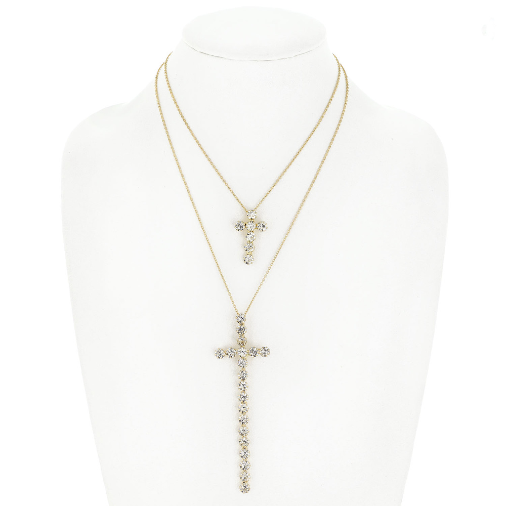 DOUBLE CRYSTAL RHINESTONE CROSS PENDANT NECKLACE