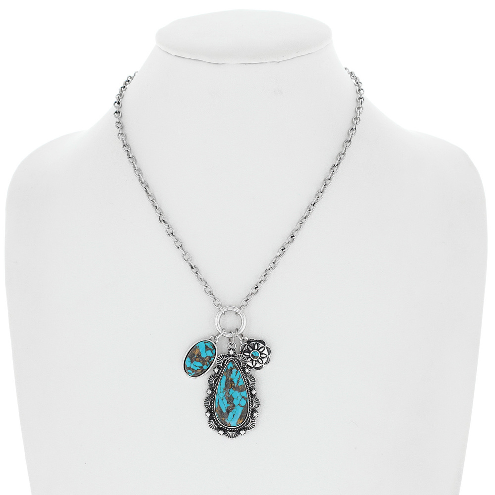 Rectangle - Western Multi Charm Turquoise Semi Stone Adjustable Pendant Necklace