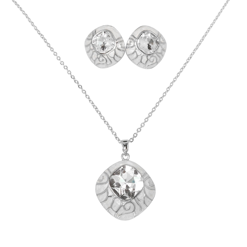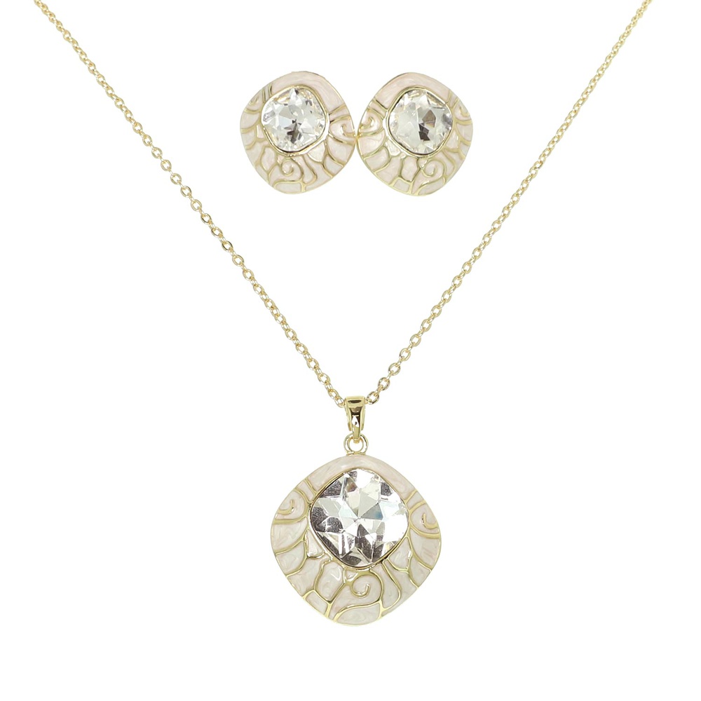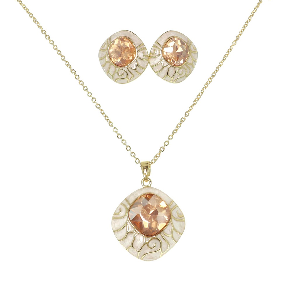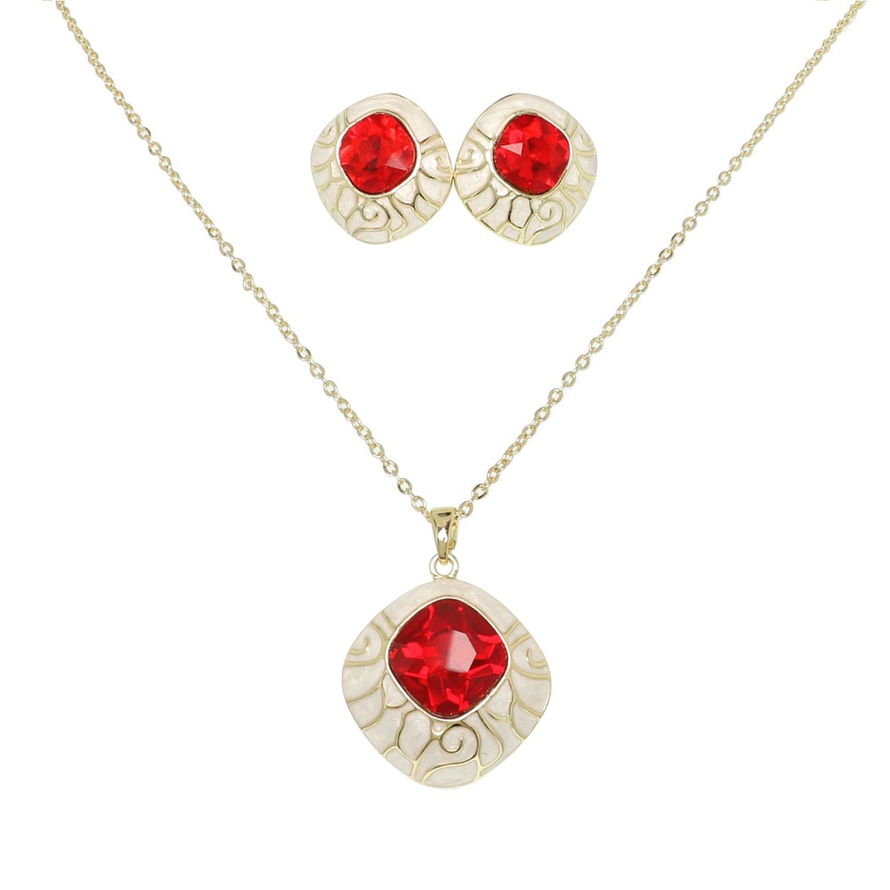 Enamel Gemstone Diamond Shaped Necklace Set