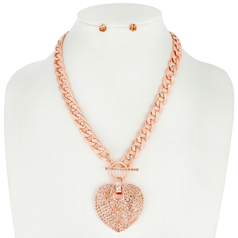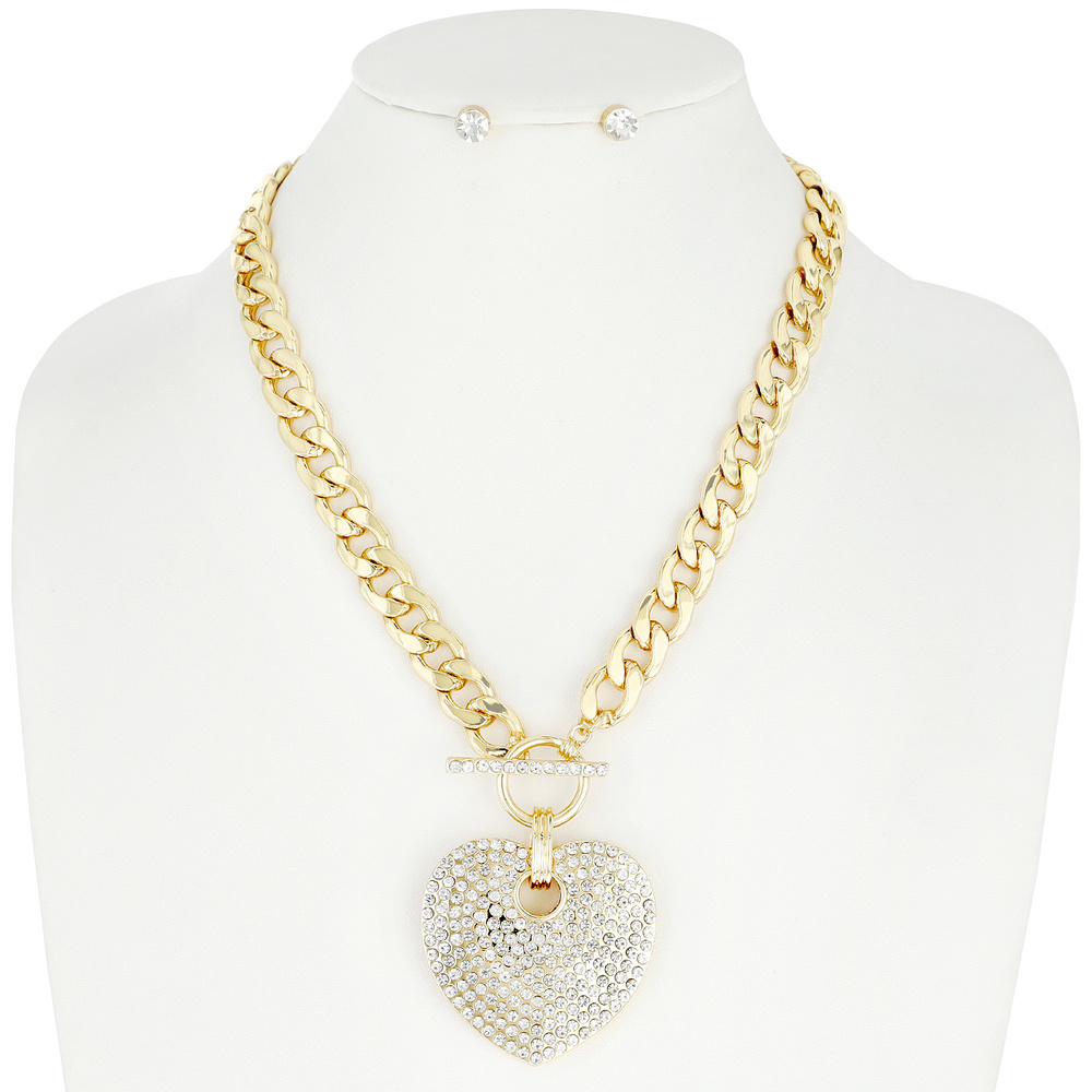 HEART PENDANT CHAIN NECKLACE AND EARRINGS SET