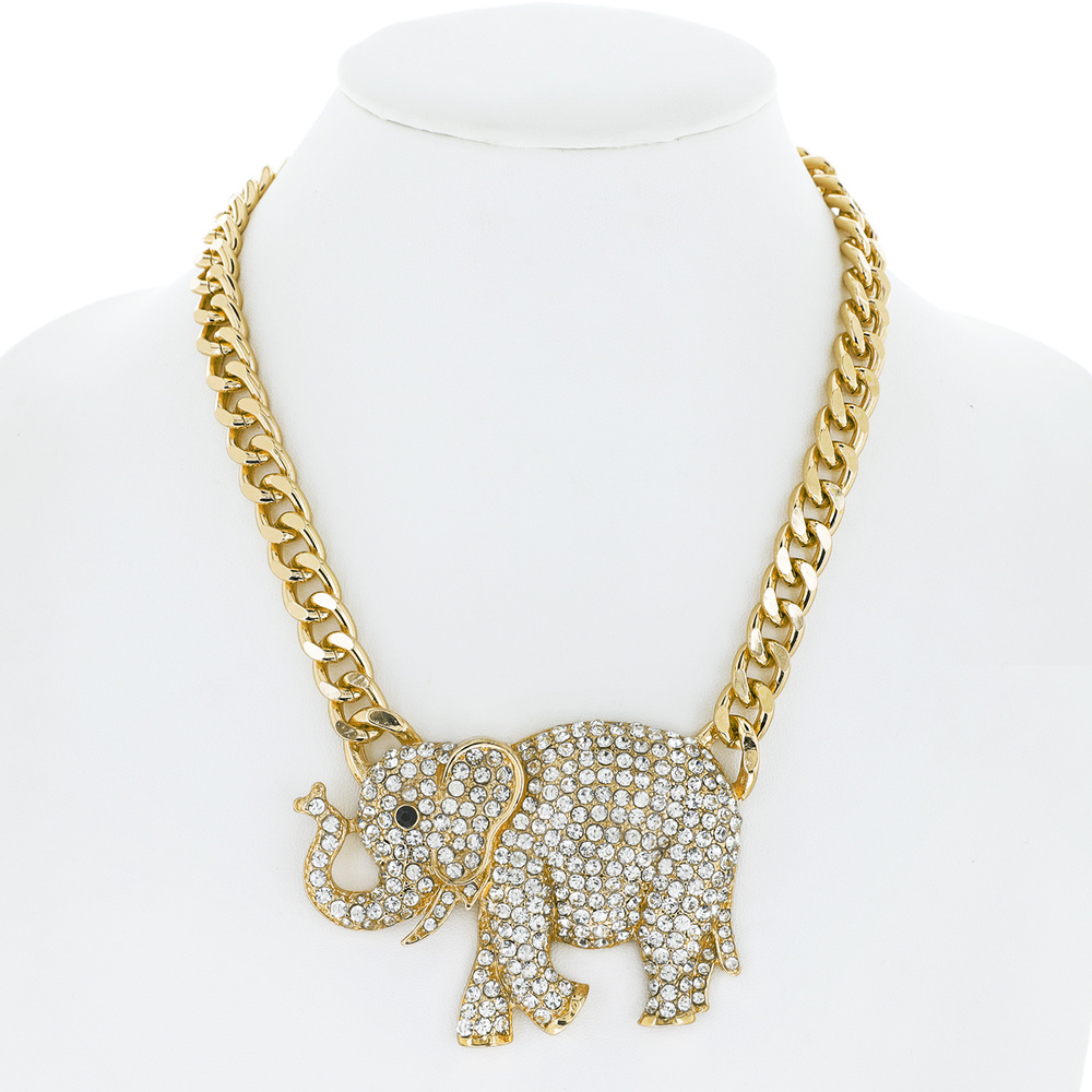CRYSTAL RHINESTONE PAVE ELEPHANT PENDANT CUBAN LINK CHAIN ADJUSTABLE NECKLACE