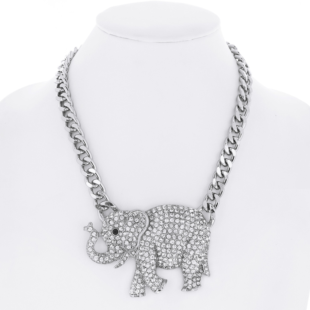 Crystal Rhinestone Pave Elephant Pendant Cuban Link Chain Adjustable Necklace