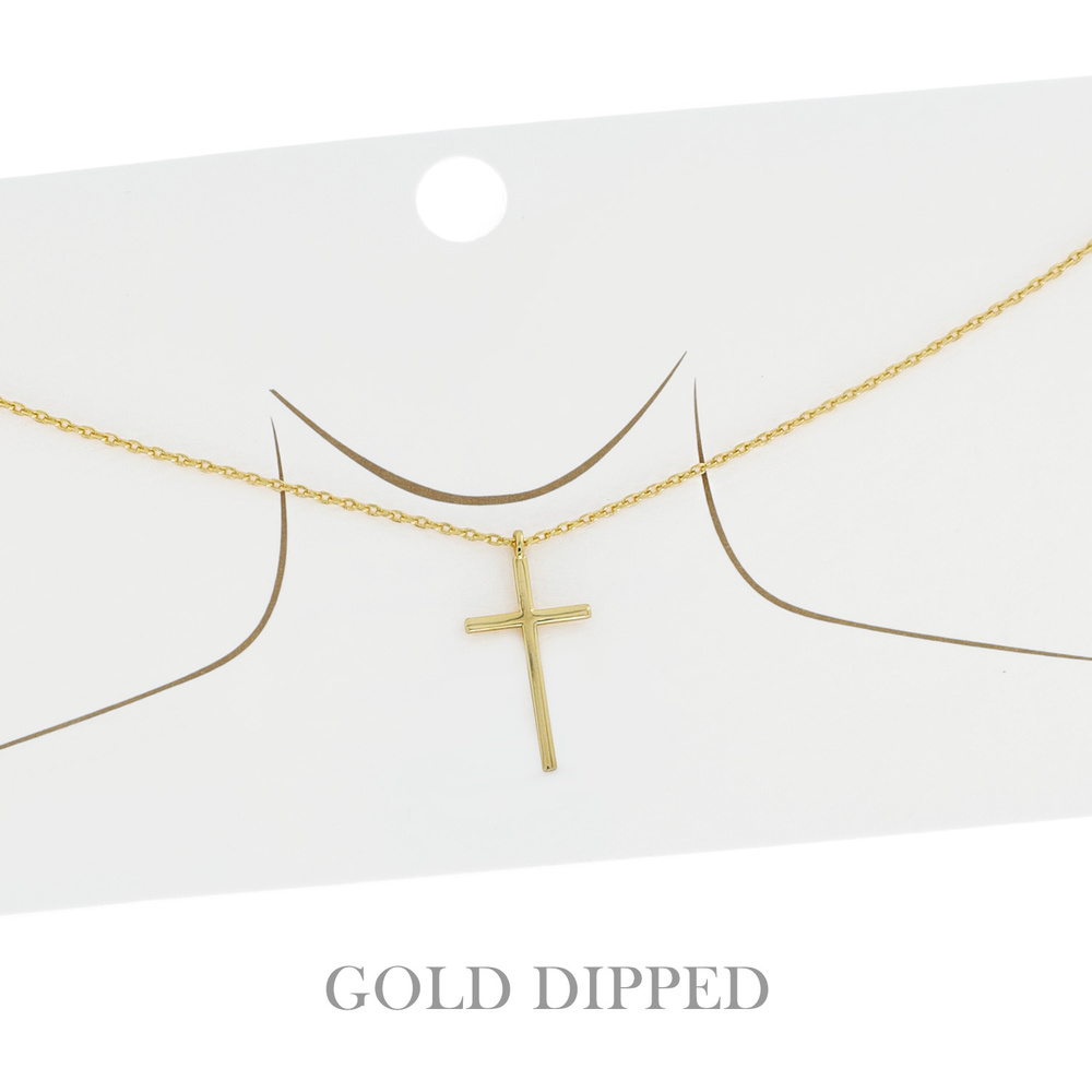 15" GOLD DIPPED ADJUSTABLE CROSS PENDANT NECKLACE