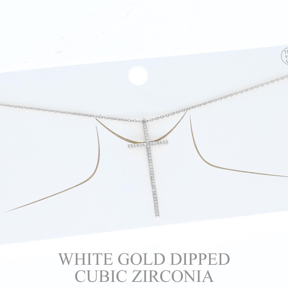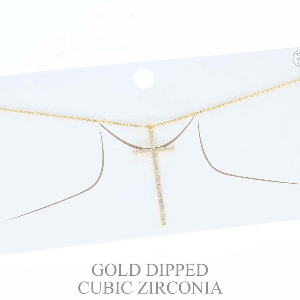 15.5 Inch Gold Plated Cz Cross Pendant Necklace