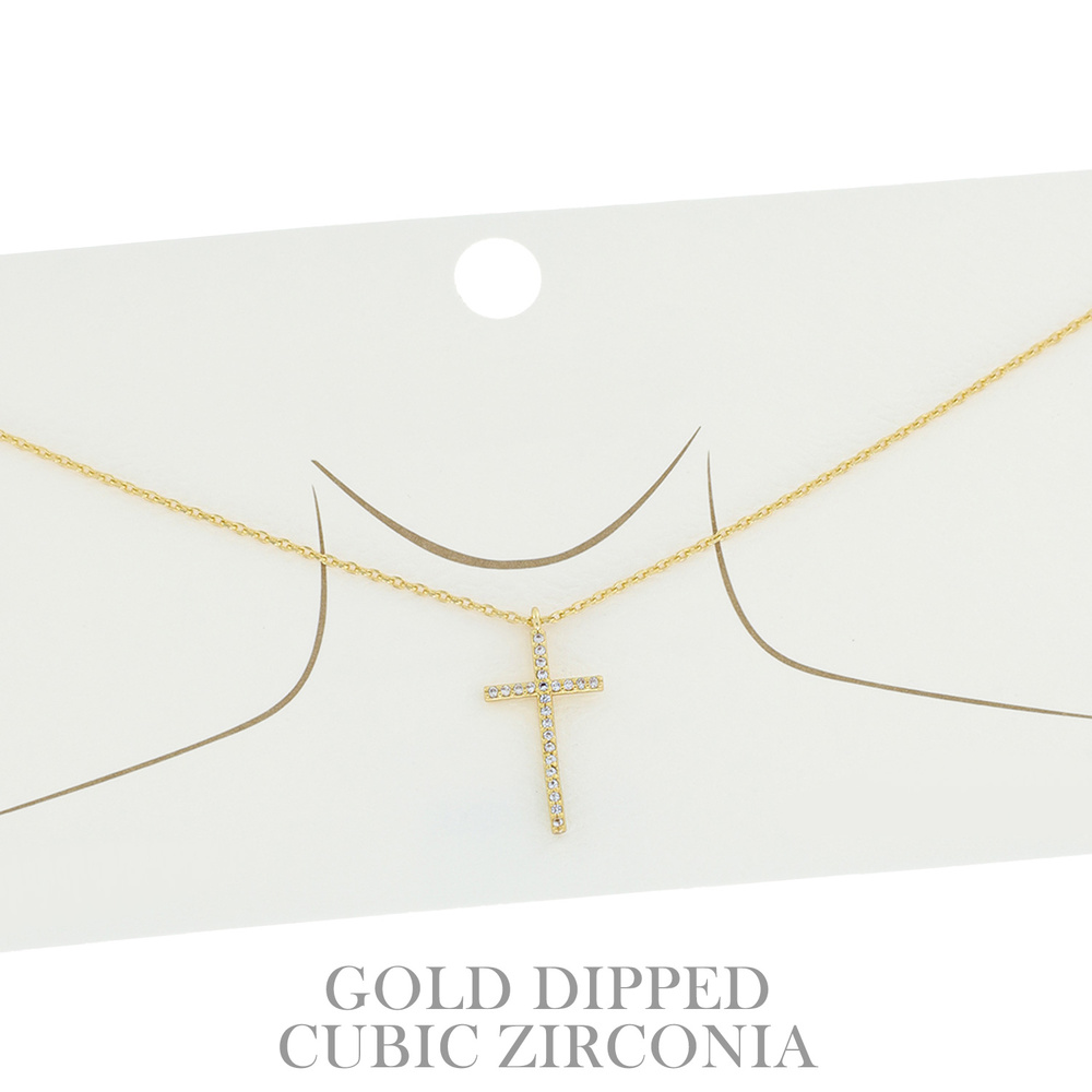 15" GOLD PLATED CUBIC ZIRCONIA PAVE ADJUSTABLE CROSS PENDANT NECKLACE IN WHITE AND YELLOW GOLD PLATTING made in KOREA
