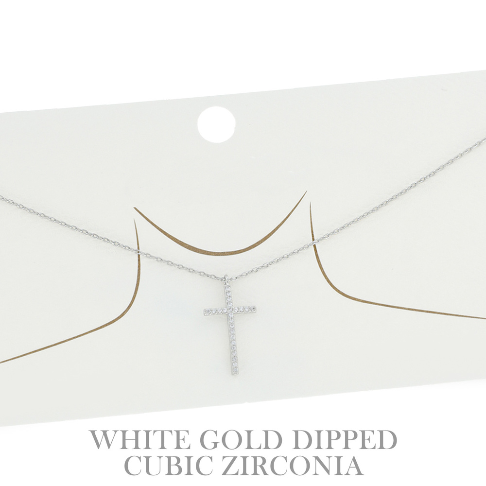 15" GOLD PLATED CUBIC ZIRCONIA PAVE ADJUSTABLE CROSS PENDANT NECKLACE IN WHITE AND YELLOW GOLD PLATTING made in KOREA