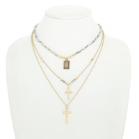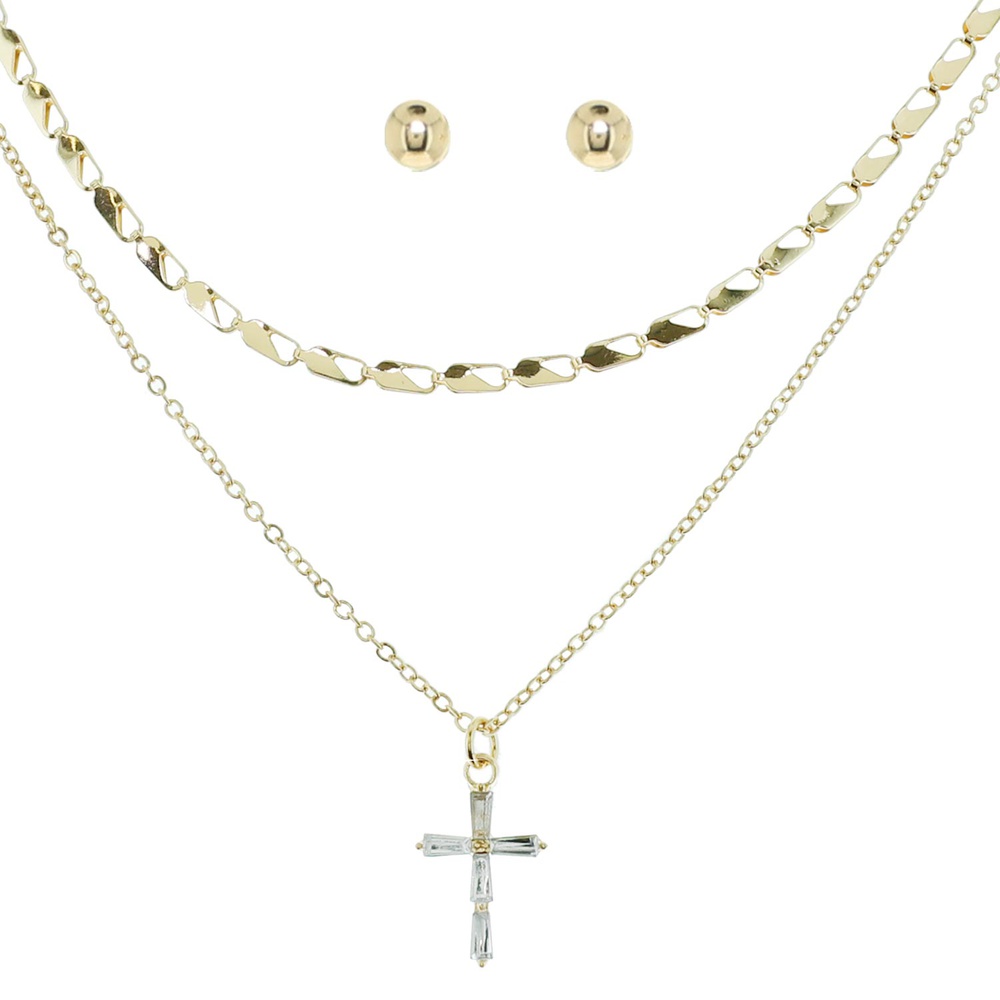 Cross Gold Tone Multi Strand Chain Necklace Set
