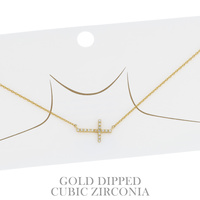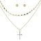 15.5" CRYSTAL RHINESTONE CROSS MULTI STRAND ADJUSTABLE CHAIN NECKLACE AND STUD EARRING SET IN GOLD TONE METAL