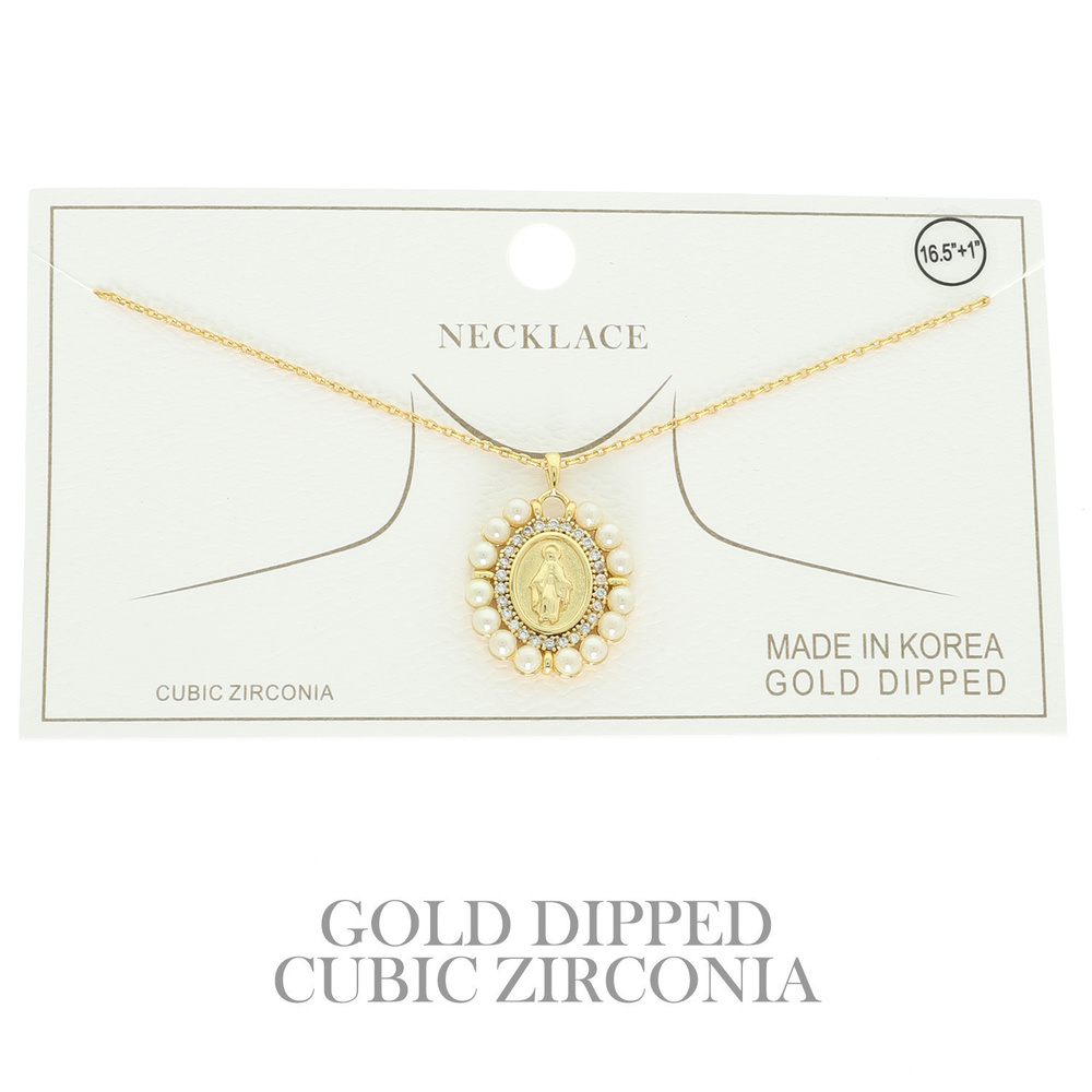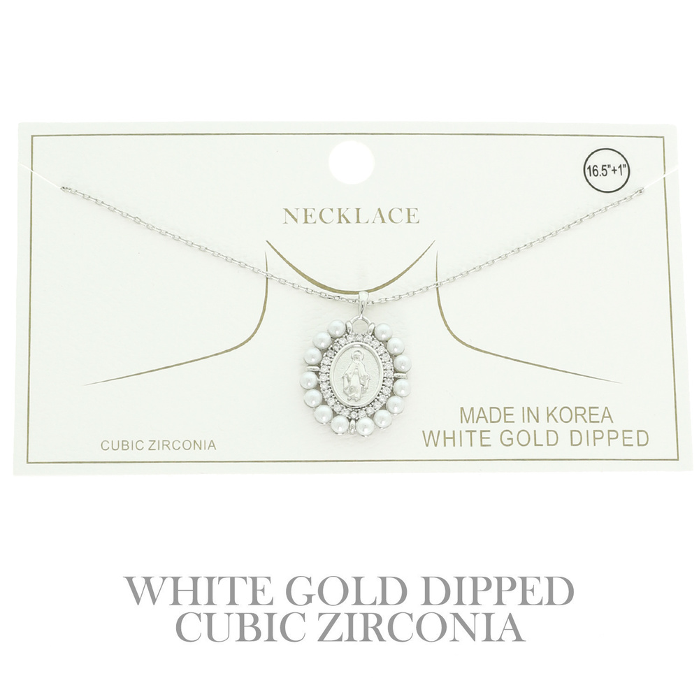 CUBIC ZIRCONIA PEARL EMBELLISHED VIRGEN DE GUADALUPE PENDANT NECKLACE