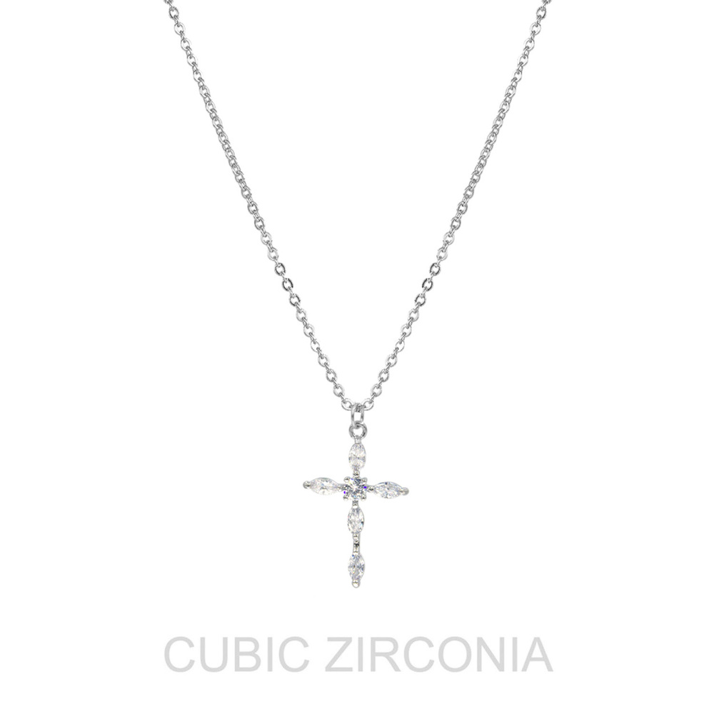MARQUISE CUT CUBIC ZIRCONIA CROSS PENDANT NECKLACE IN SILVER TONE METAL LENGTH: 15"