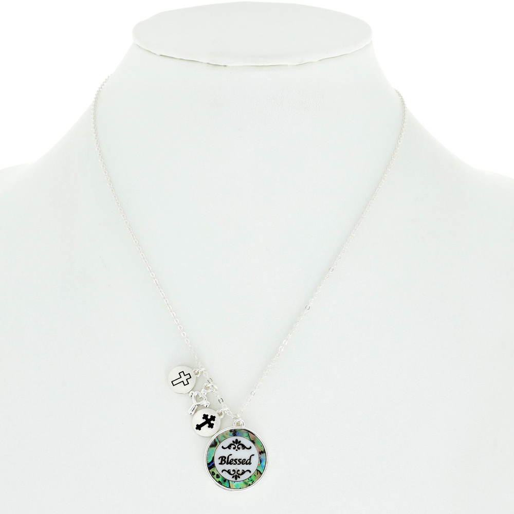 RELIGIOUS "BLESSED" ABALONE SHELL PENDANT NECKLACE