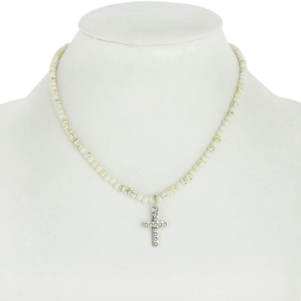 WESTERN CROSS PENDANT TURQUOISE BEAD NECKLACE