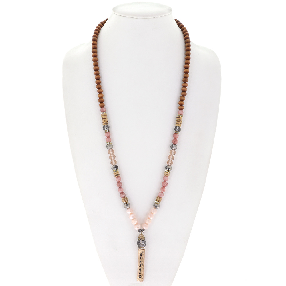 "BLESSED" SANDALWOOD BEAD MIX CHARM NECKLACE