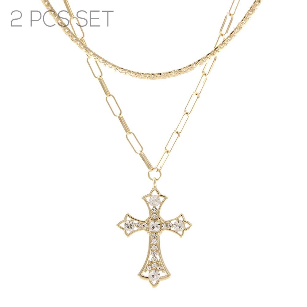 CRYSTAL SYRIAC CROSS TWO NECKLACE SET