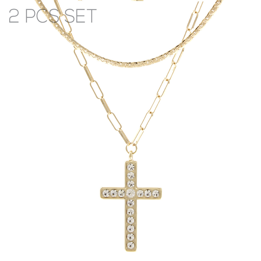 CRYSTAL RHINESTONE LATIN CROSS TWO NECKLACE SET