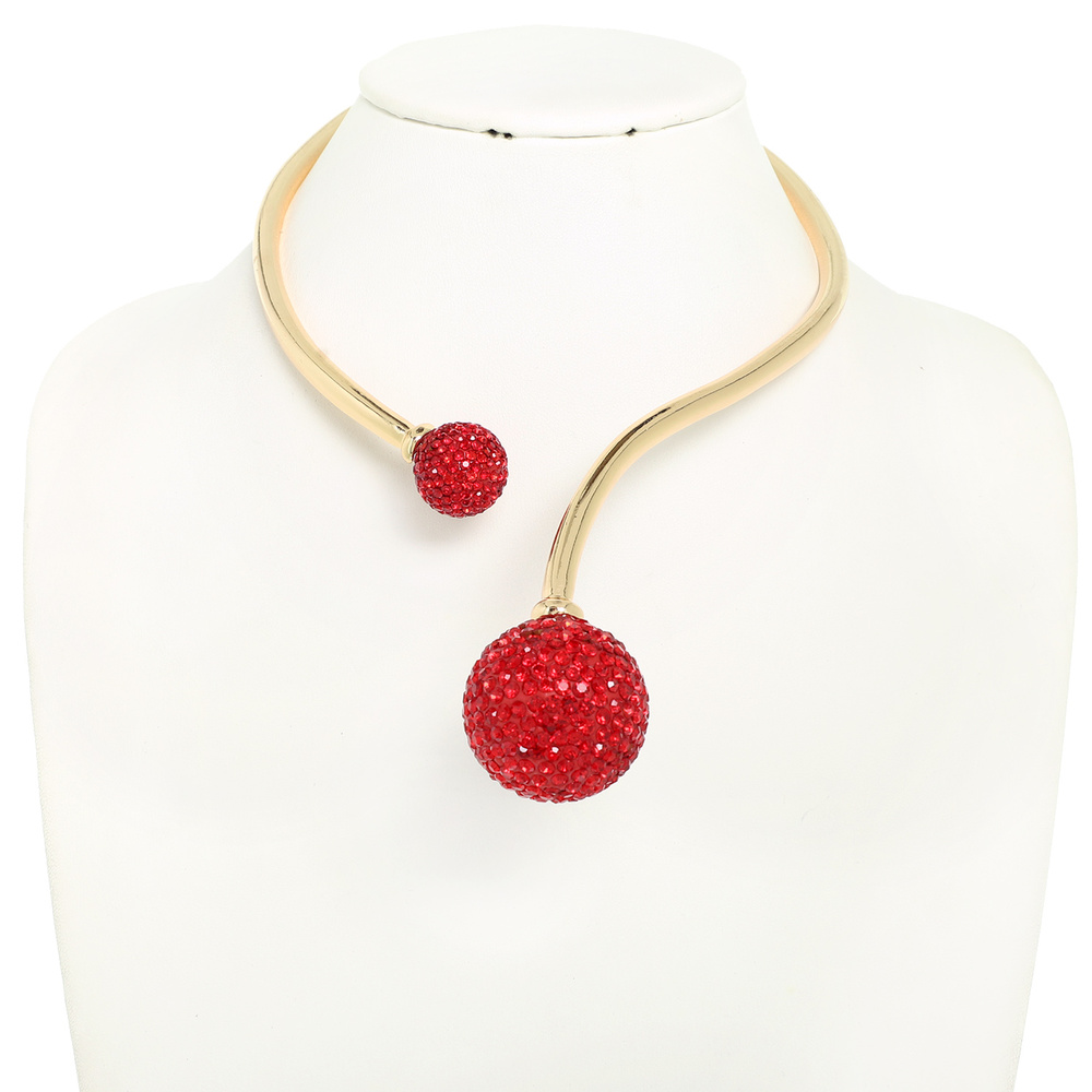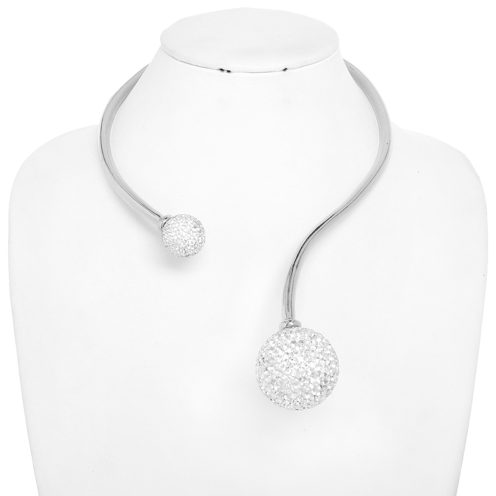 WOMEN'S ADJUSTABLE RHINESTONE PAVE BALL ORNAMENT OPEN CHOKER NECKLACE