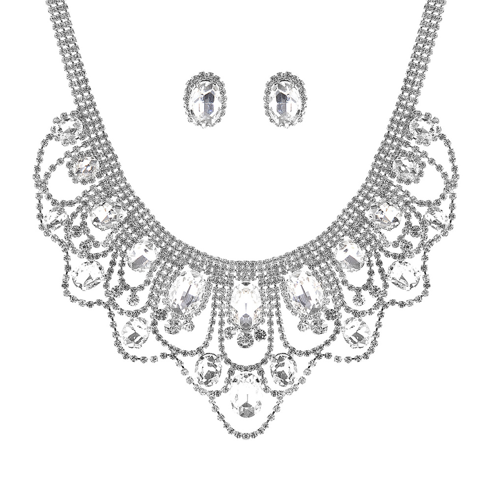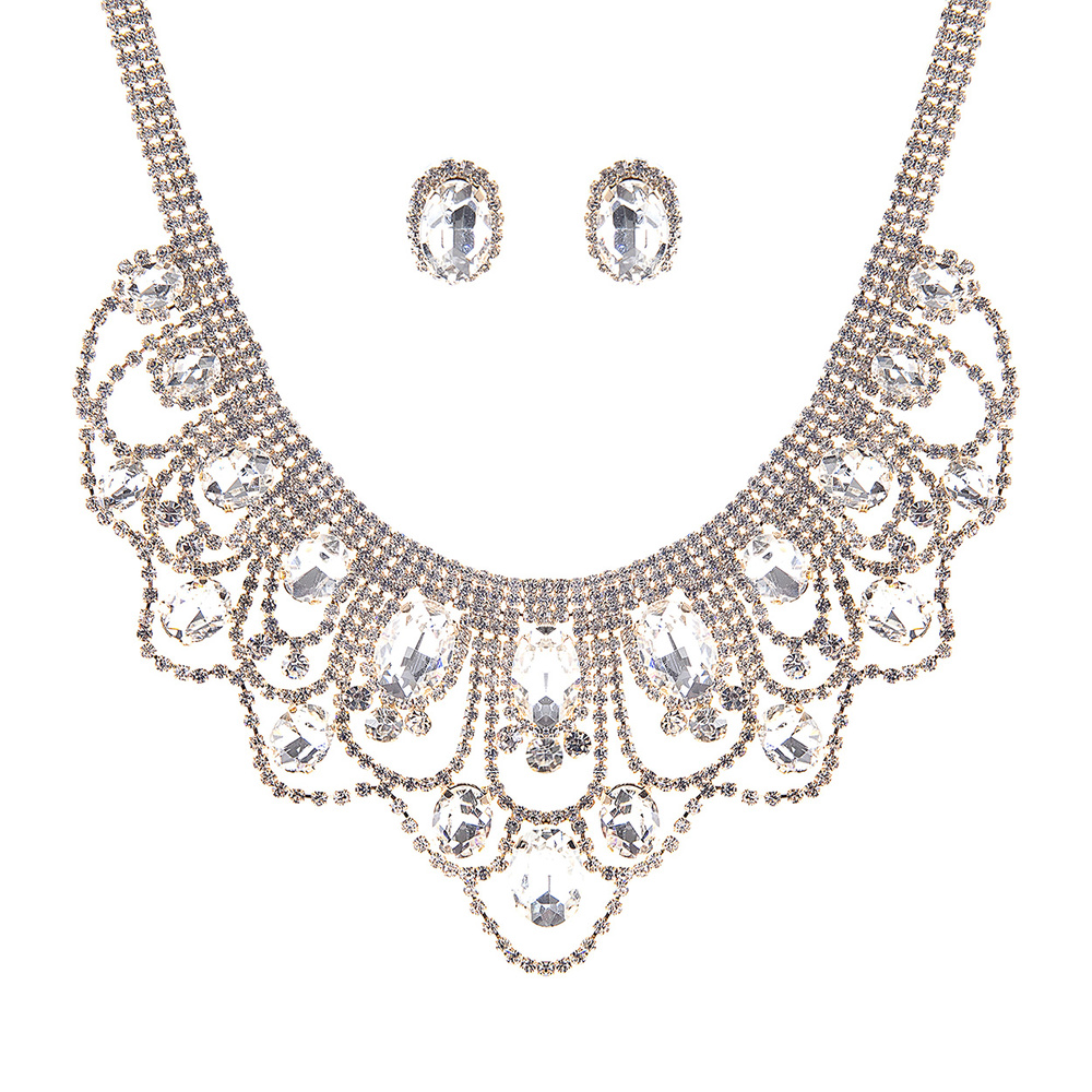 Crystal Rhinestone Statement Bib Necklace And Earrings Set