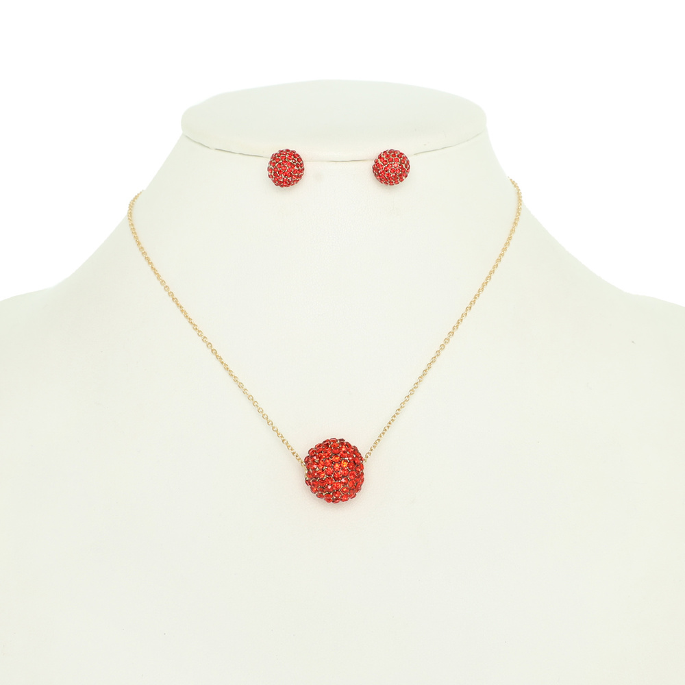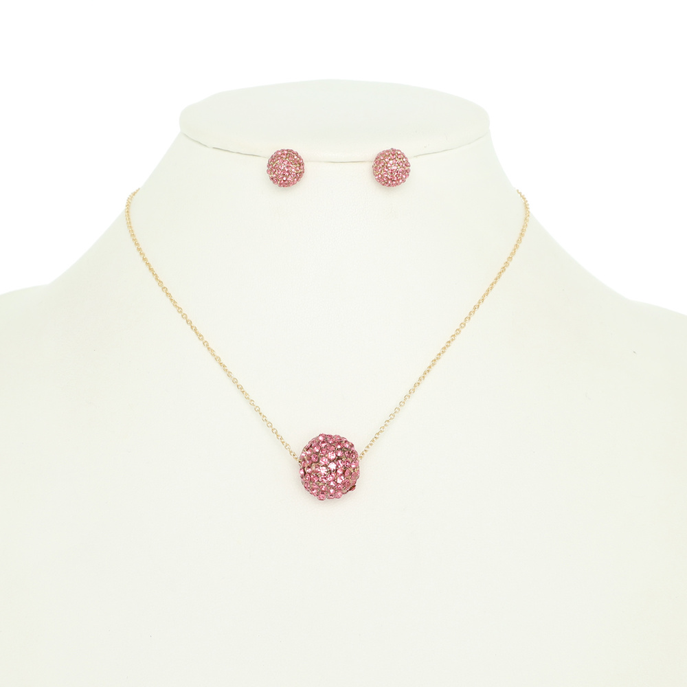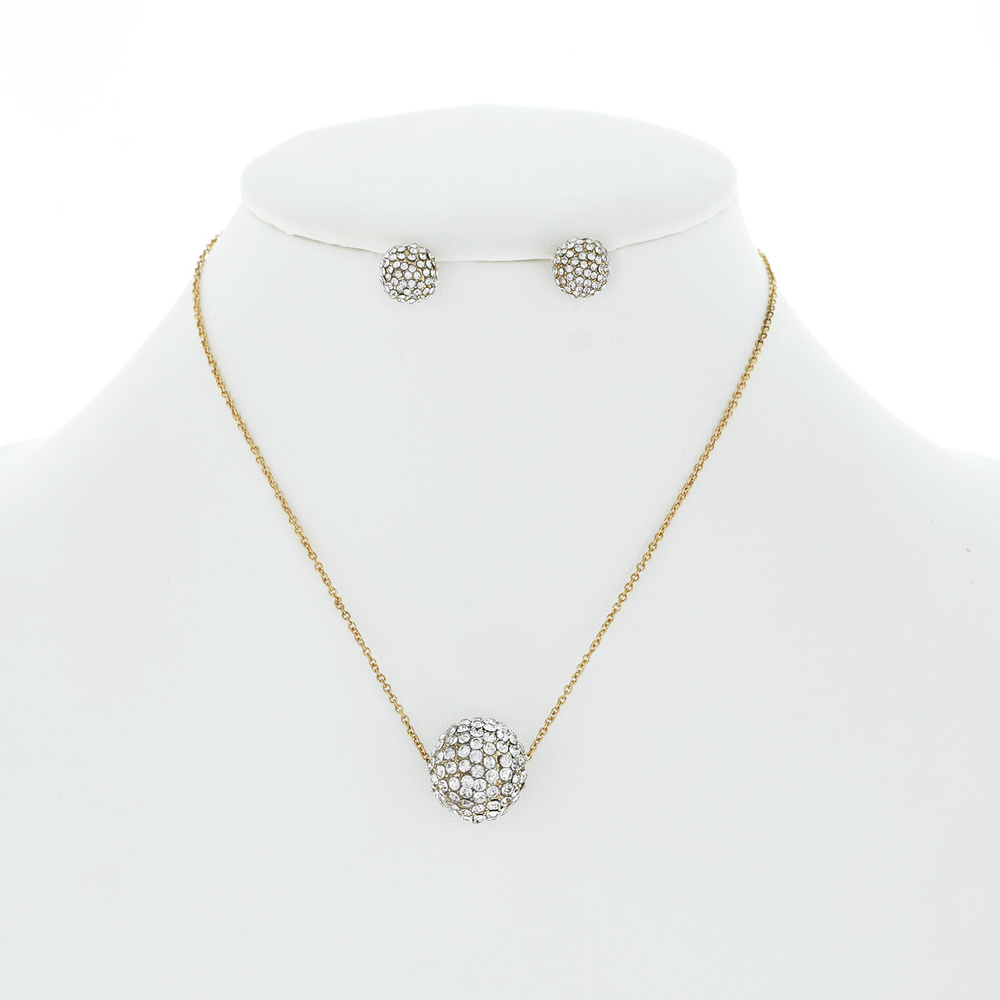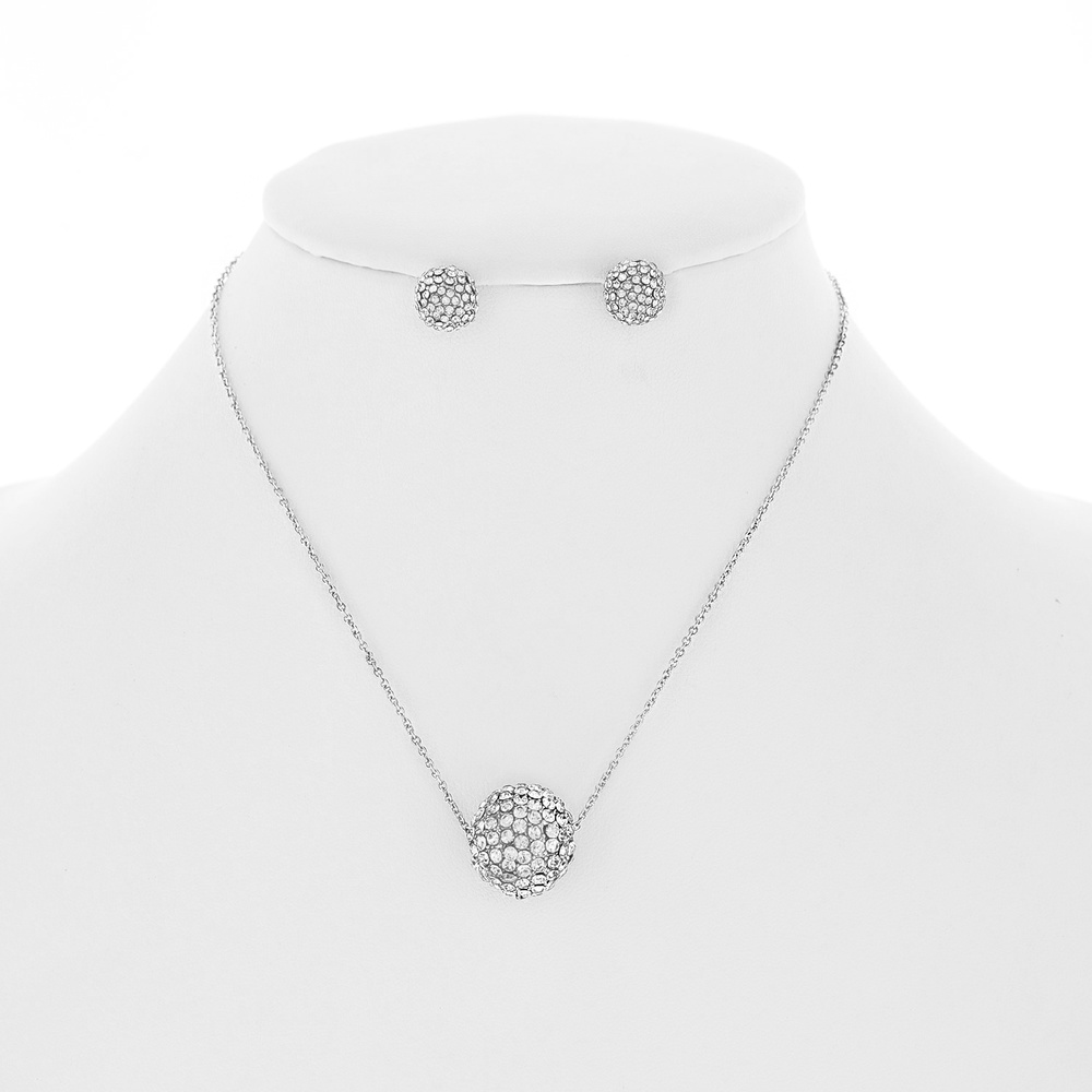 CRYSTAL RHINESTONE PAVE BALL NECKLACE AND STUD EARRING SET