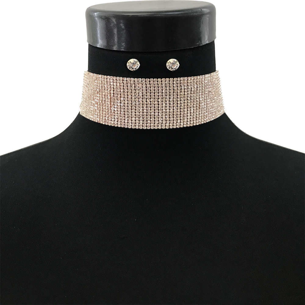 18 LINE CRYSTAL RHINESTONE CHOKER NECKLACE AND EARRINGS SET