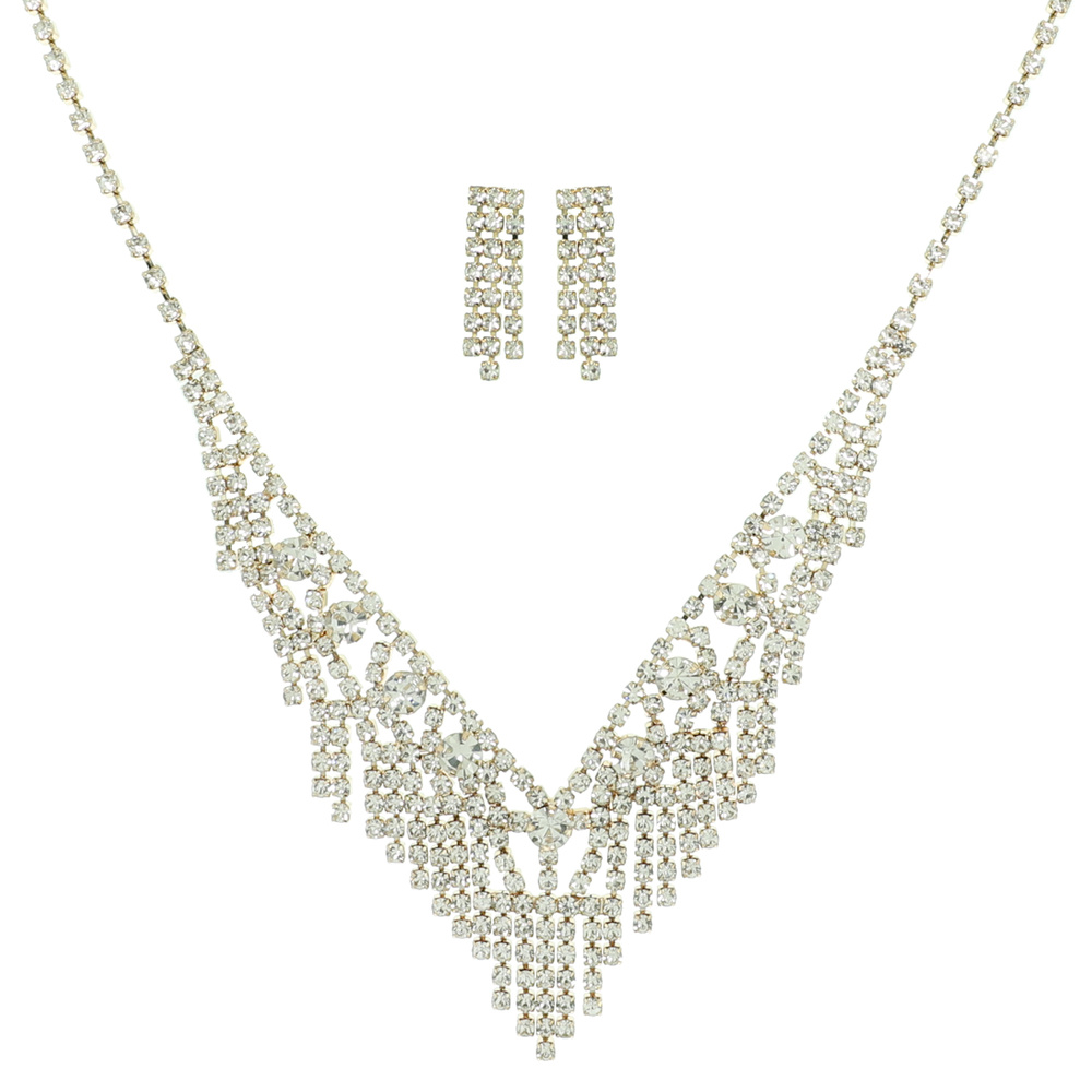 Crystal Rhinestone V-shaped Tassel Necklace Set
