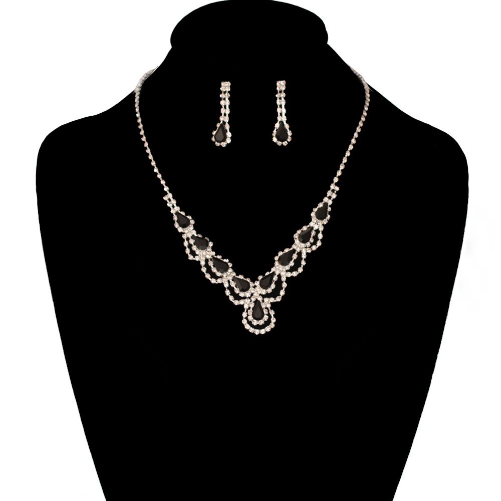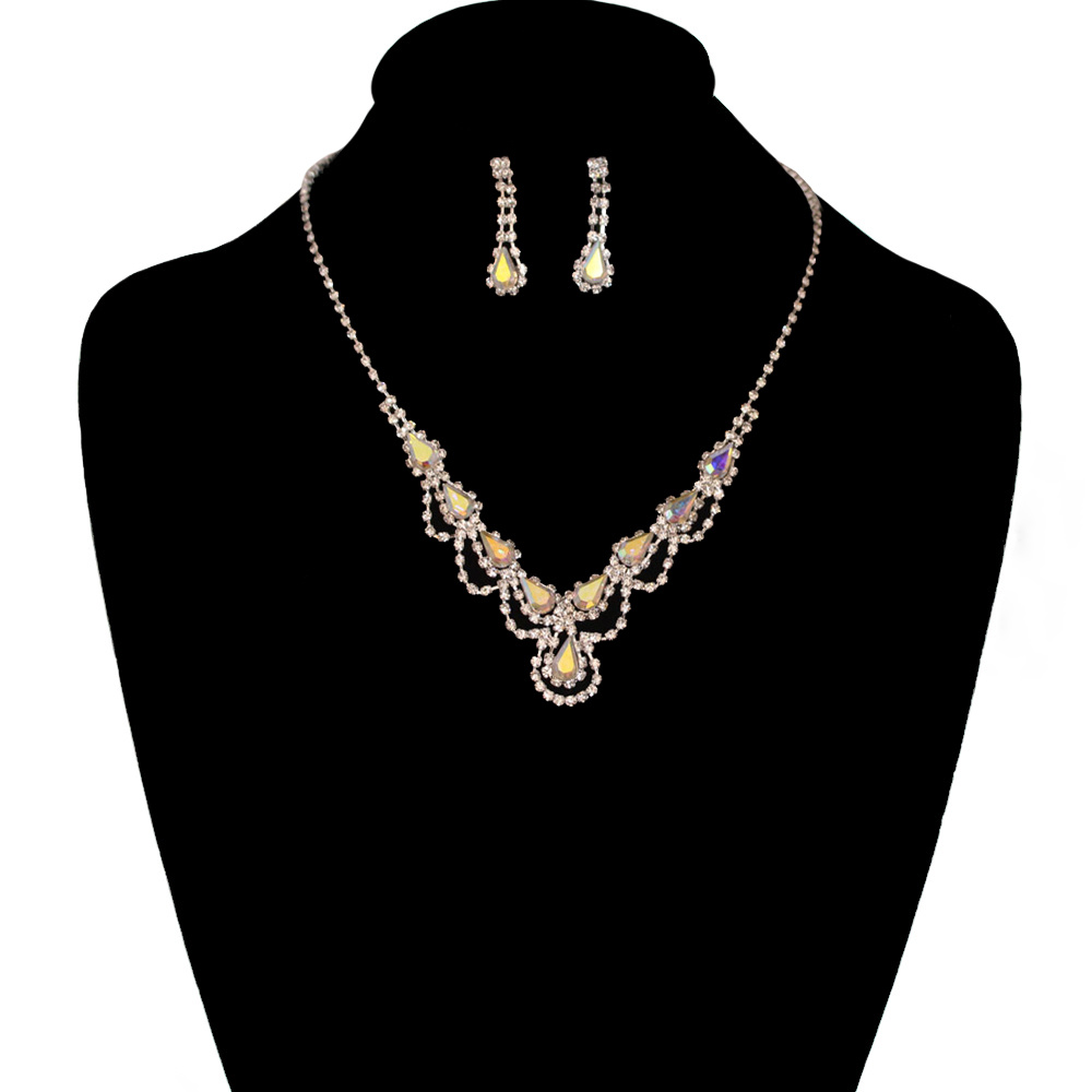 Rhinestone Necklace And Earrings Set Nem1646sjt