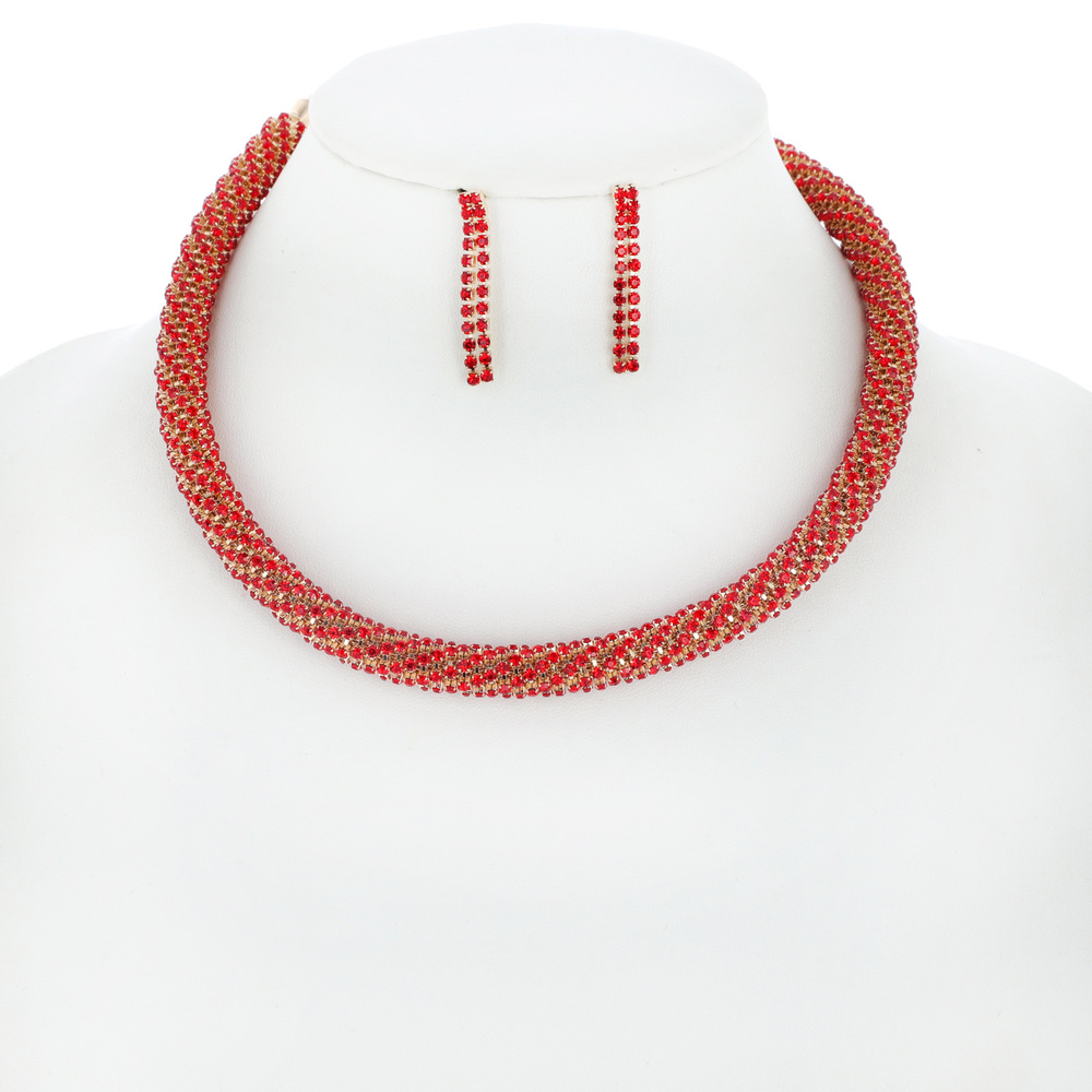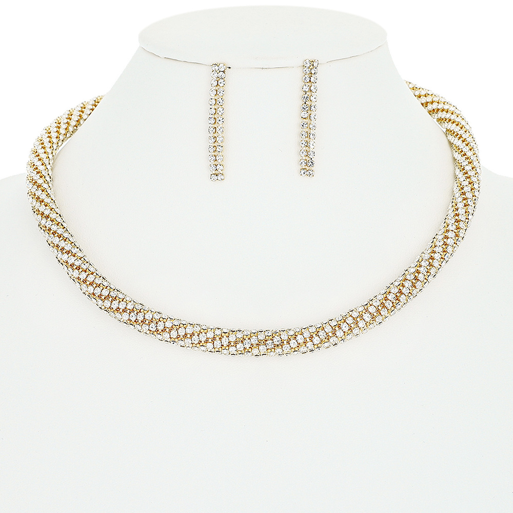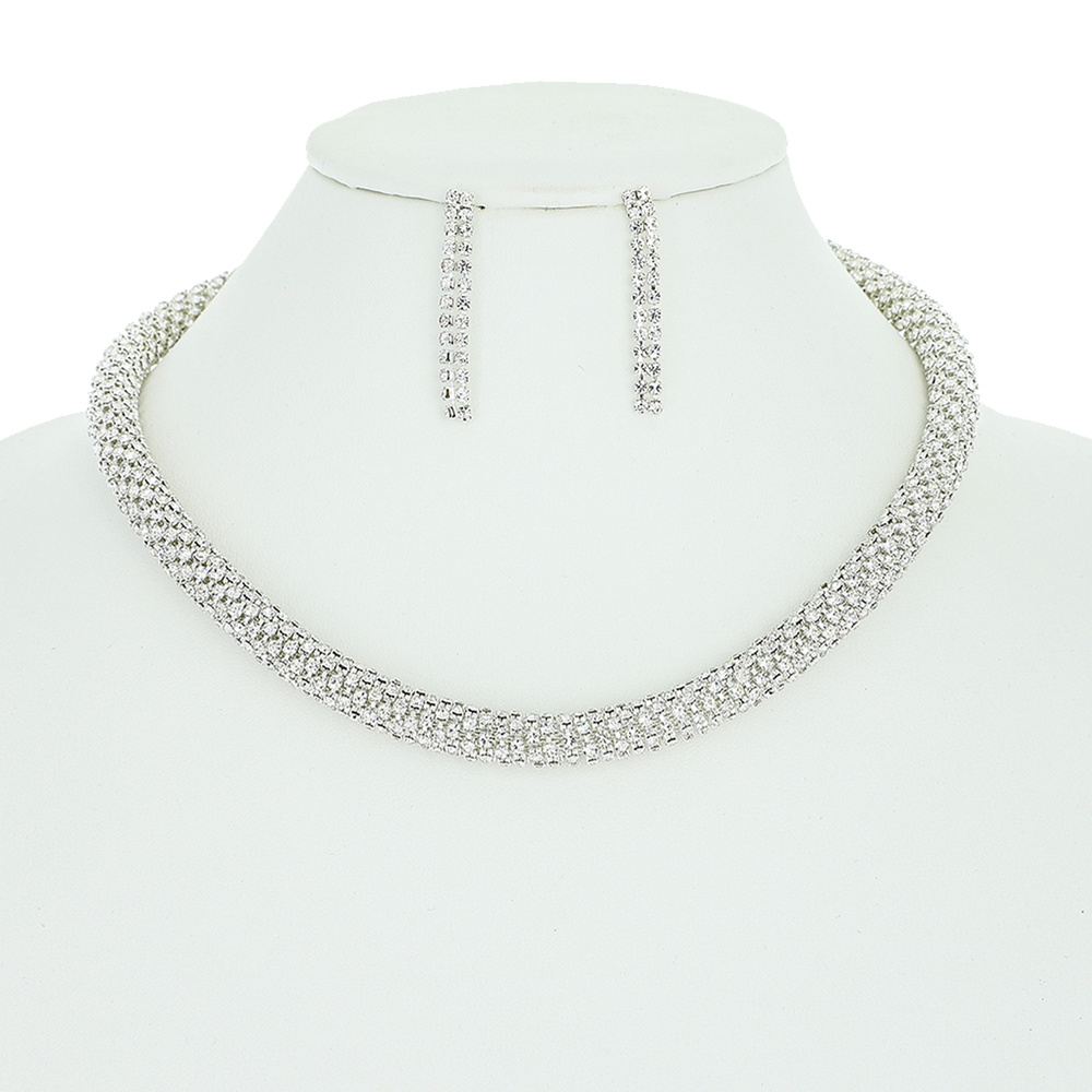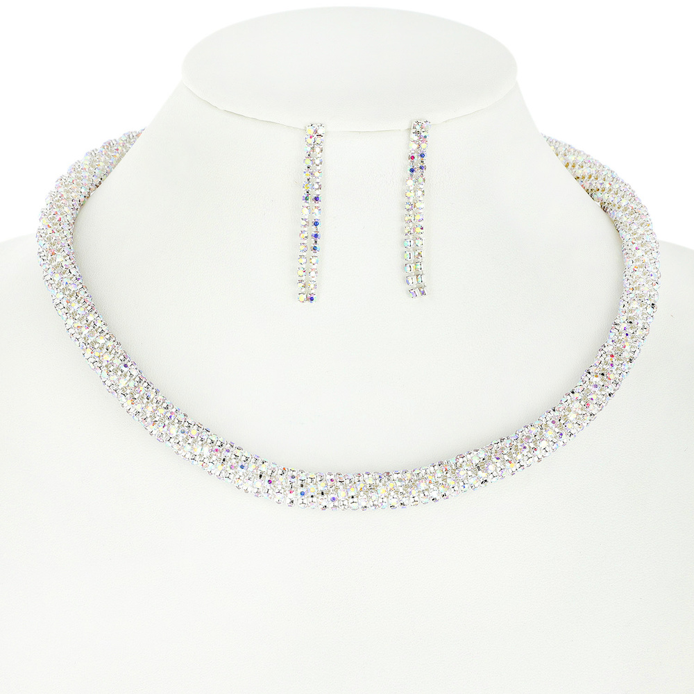 CRYSTAL RHINESTONE NECKLACE AND EARRINGS SET
