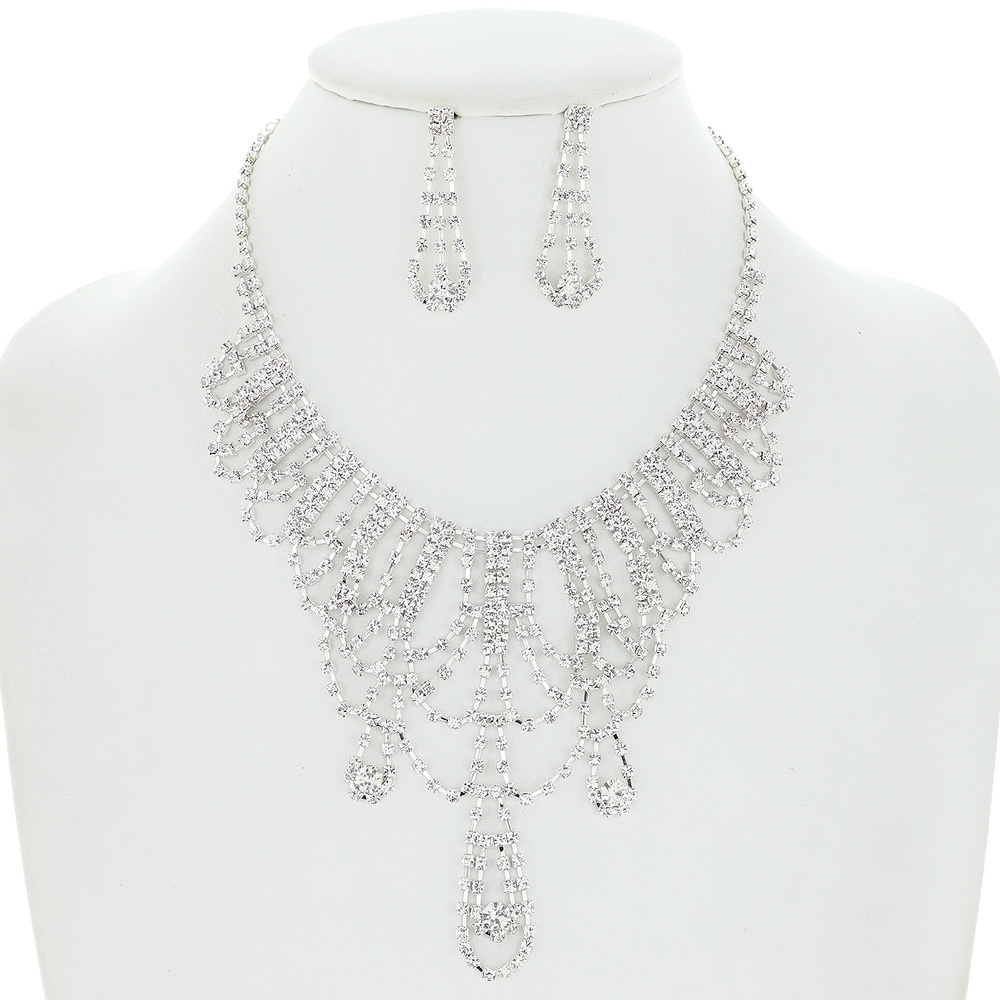 BRIDAL CRYSTAL BIB NECKLACE EARRINGS SET