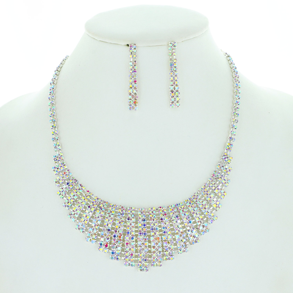 Vintage Glam Crystal Rhinestone Pave Bib Necklace Earring Set