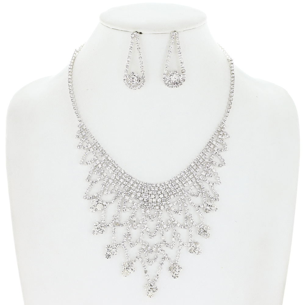 BRIDAL CRYSTAL BIB NECKLACE EARRINGS SET