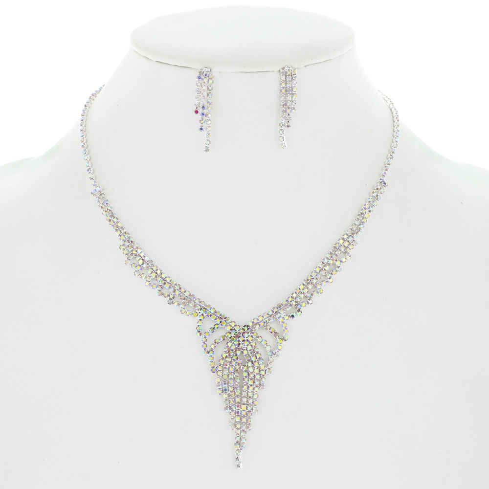BRIDAL CRYSTAL FRINGE NECKLACE EARRINGS SET