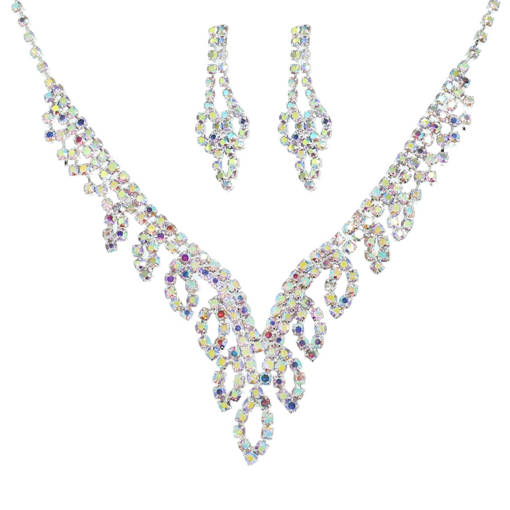 CRYSTAL RHINESTONE VINE FRINGE V-SHAPED ADJUSTABLE NECKLACE EARRING SET