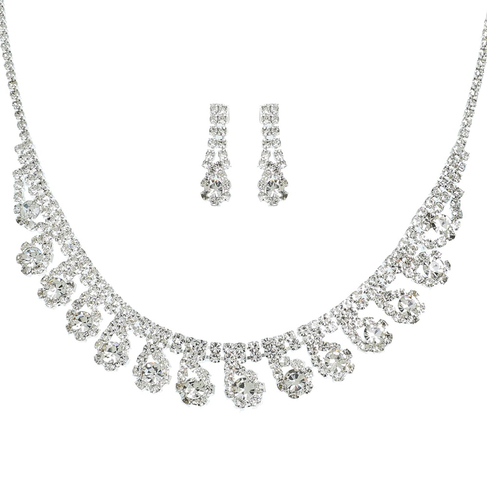 Crystal Rhinestone Teardrop Fringe Necklace Set