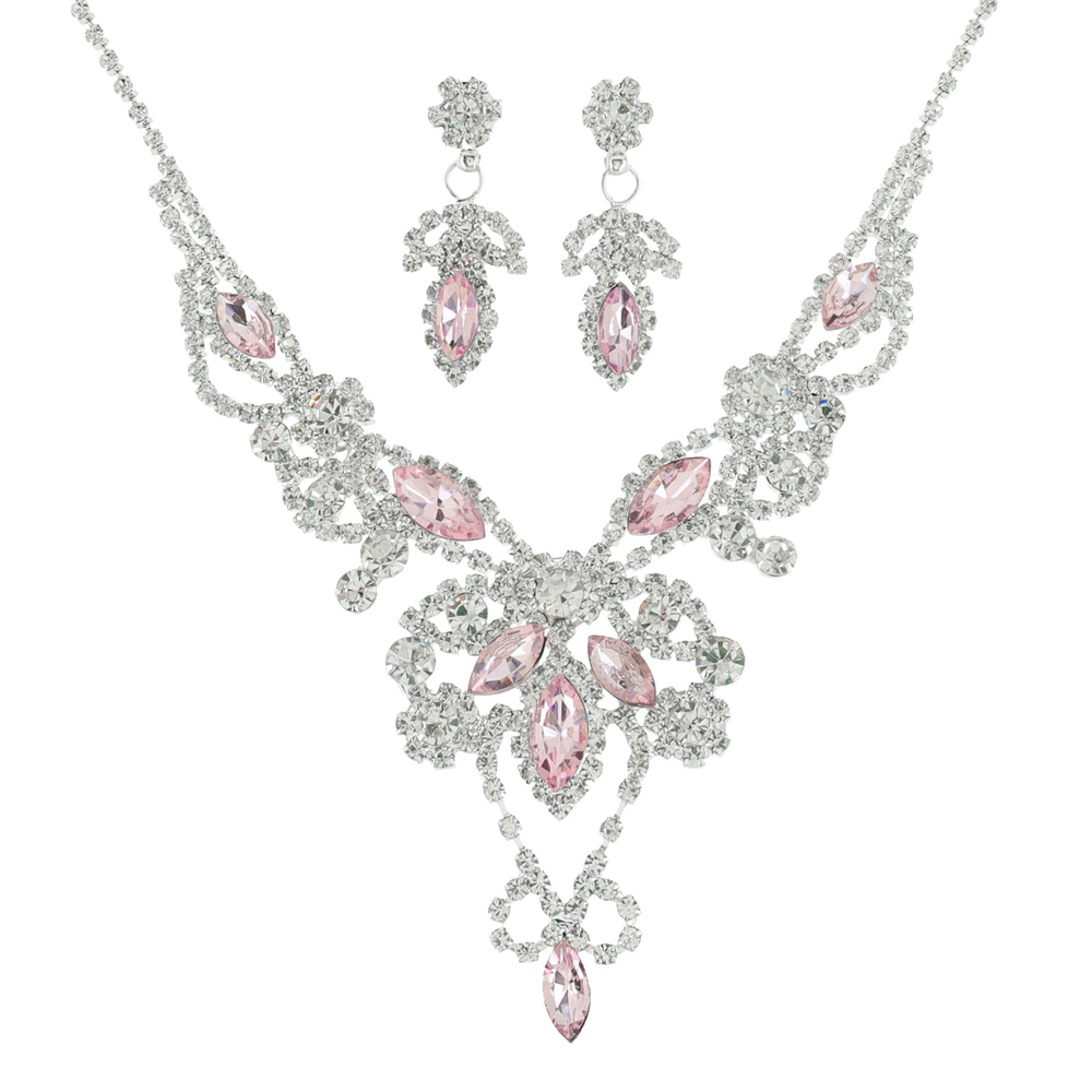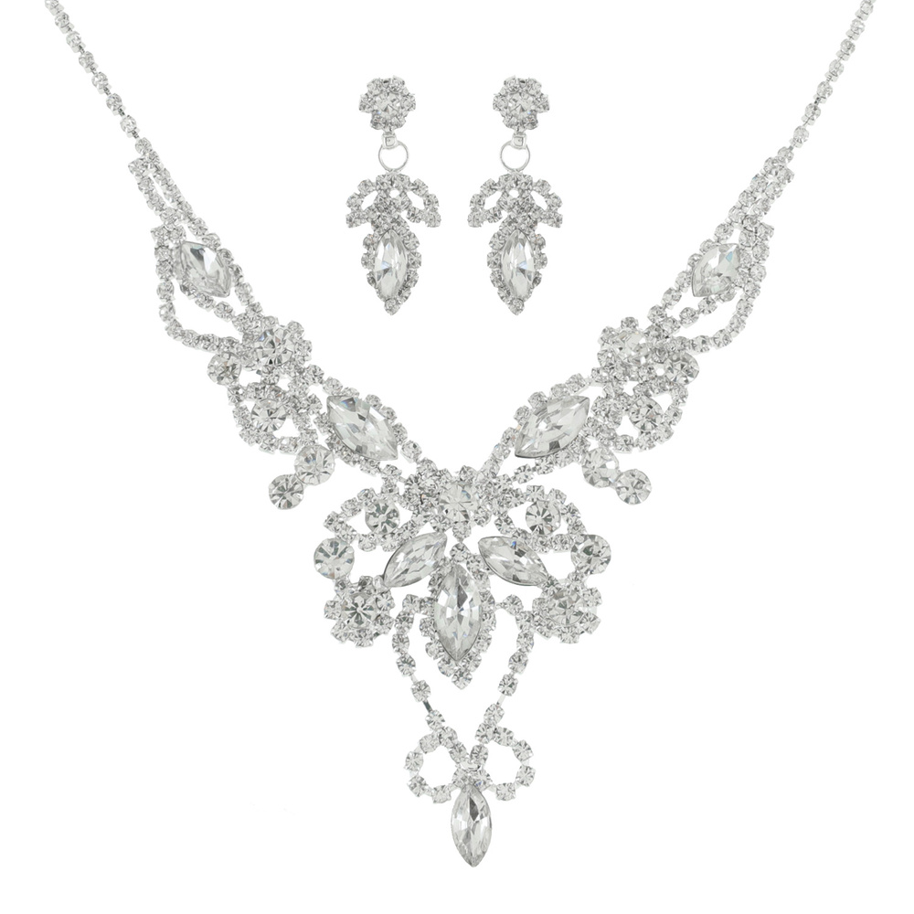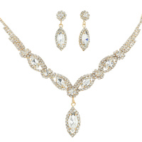 CRYSTAL MARQUISE CLUSTER ADJUSTABLE V-SHAPE BIB NECKLACE EARRING SET