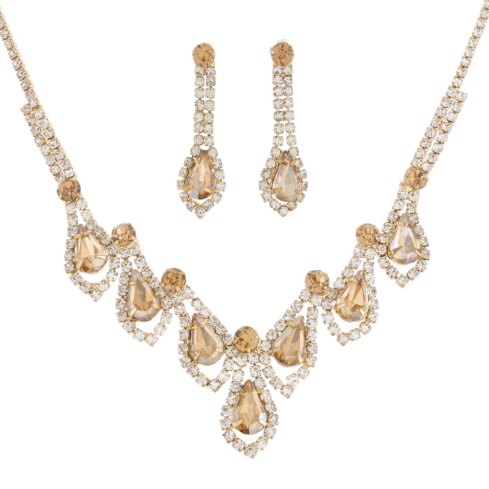 Crystal Rhinestone Teardrop Cluster Adjustable V-shape Bib Necklace Earring Set