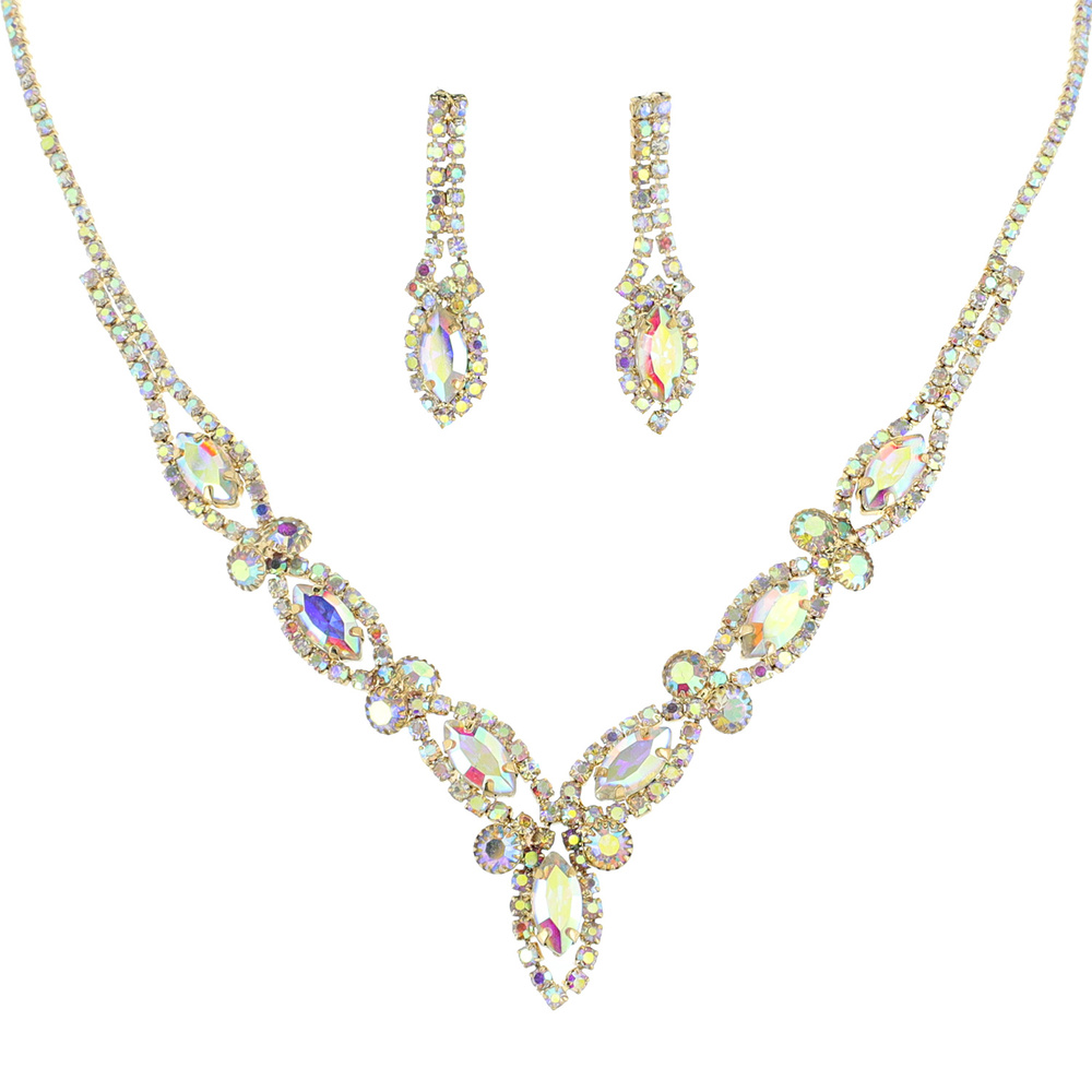 CRYSTAL MARQUISE CLUSTER ADJUSTABLE V-SHAPE BIB NECKLACE EARRING SET