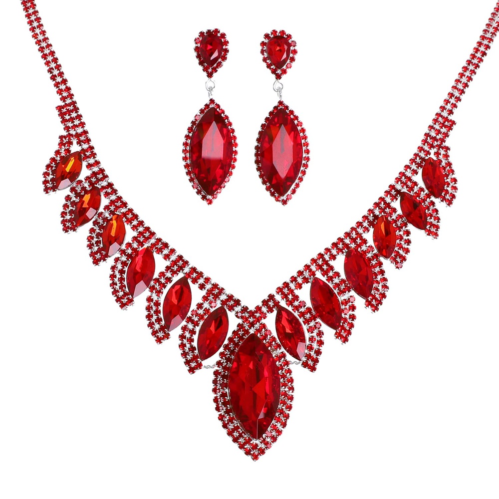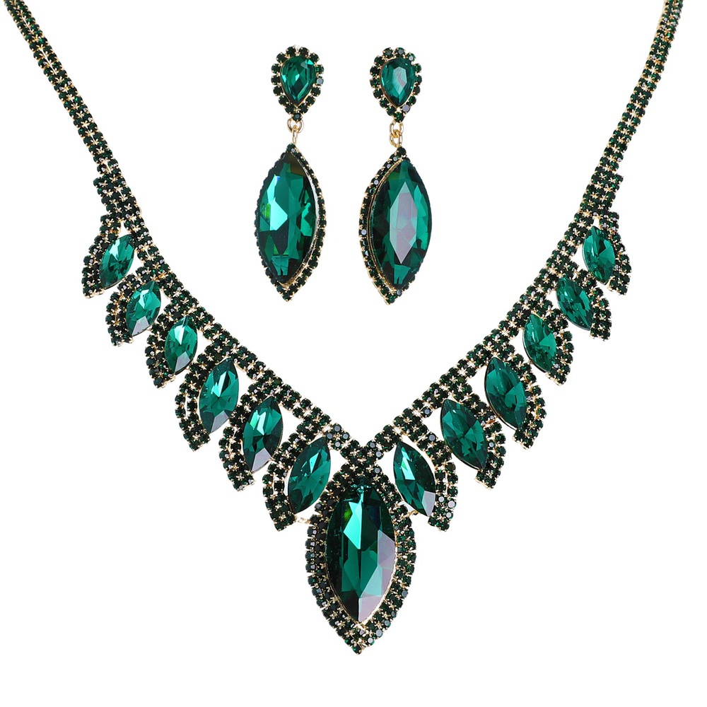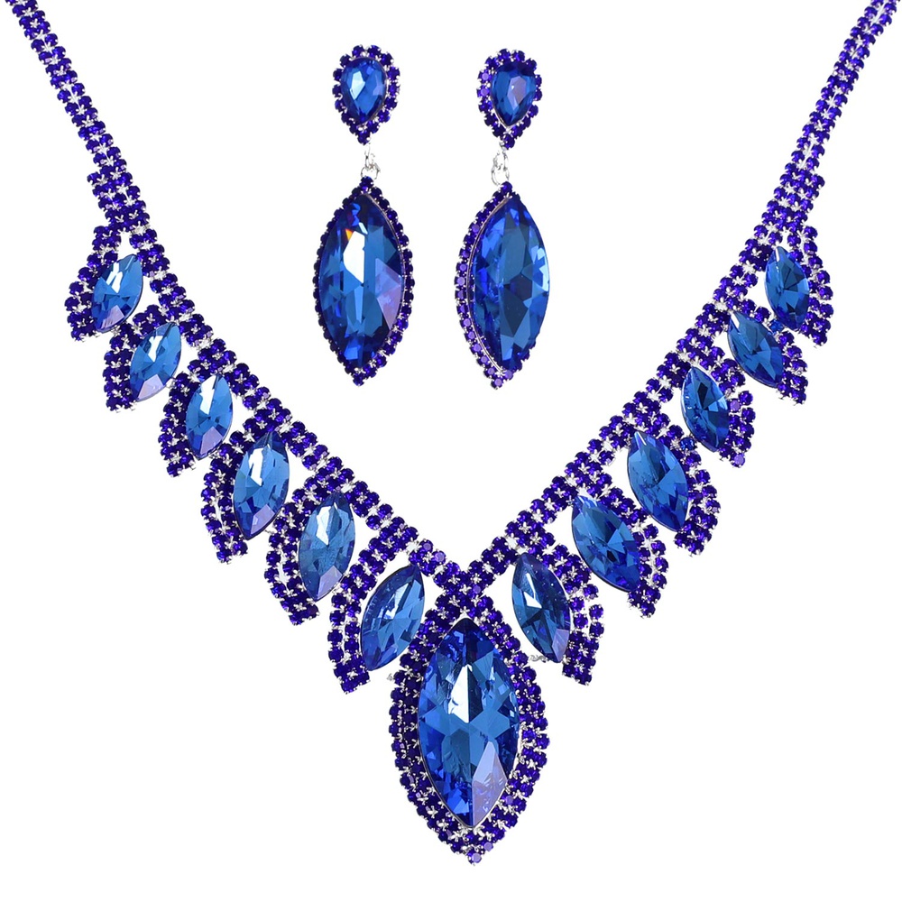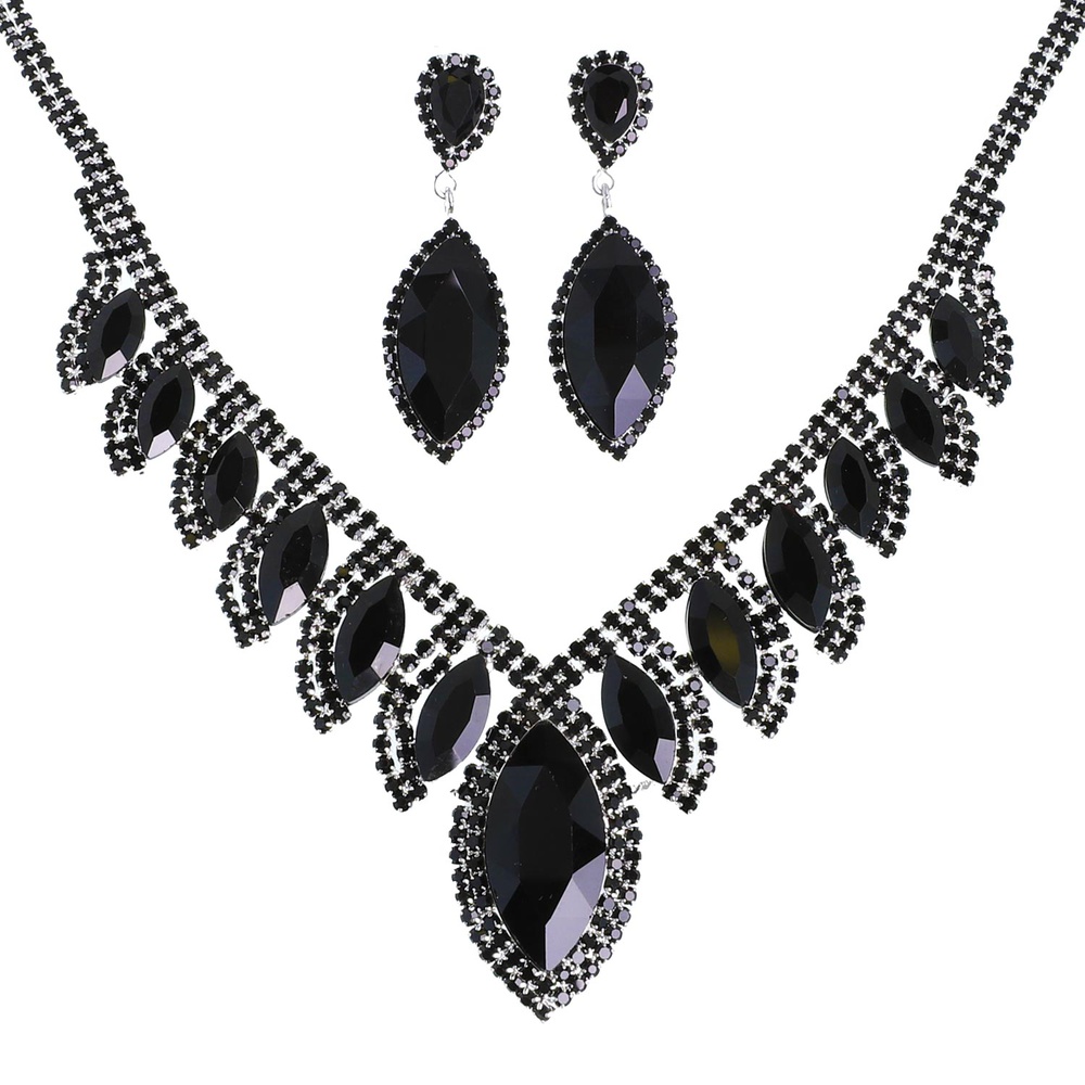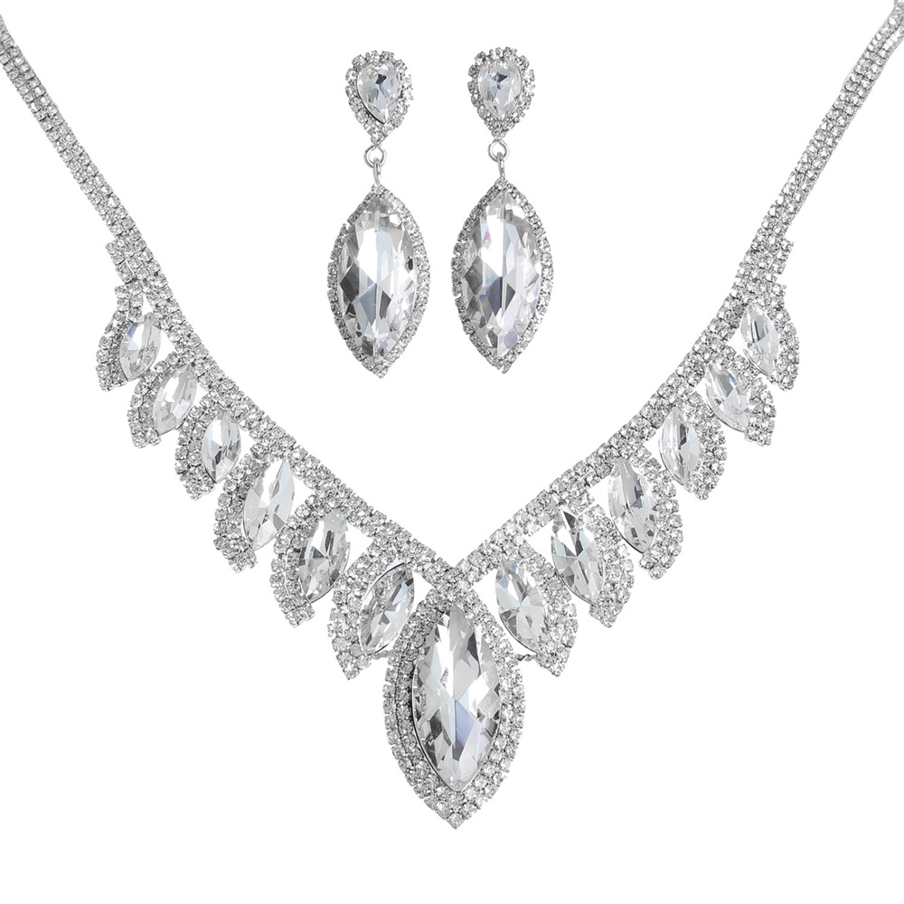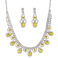 Crystal Petal Cut Fringe Teardrop Necklace Set