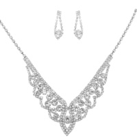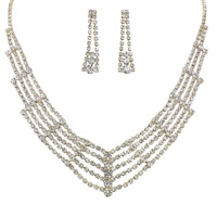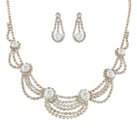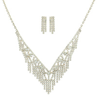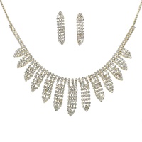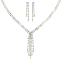 CRYSTAL RHINESTONE PETAL CUT FRINGE TEARDROP ADJUSTABLE NECKLACE EARRING SET