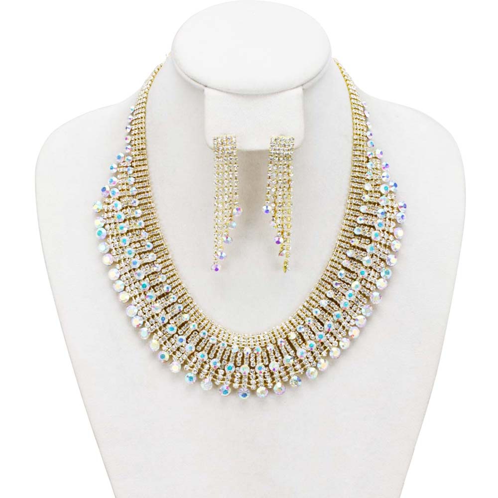 3 Tiered Rhinestone Color Gradient Necklace And Earrings Set