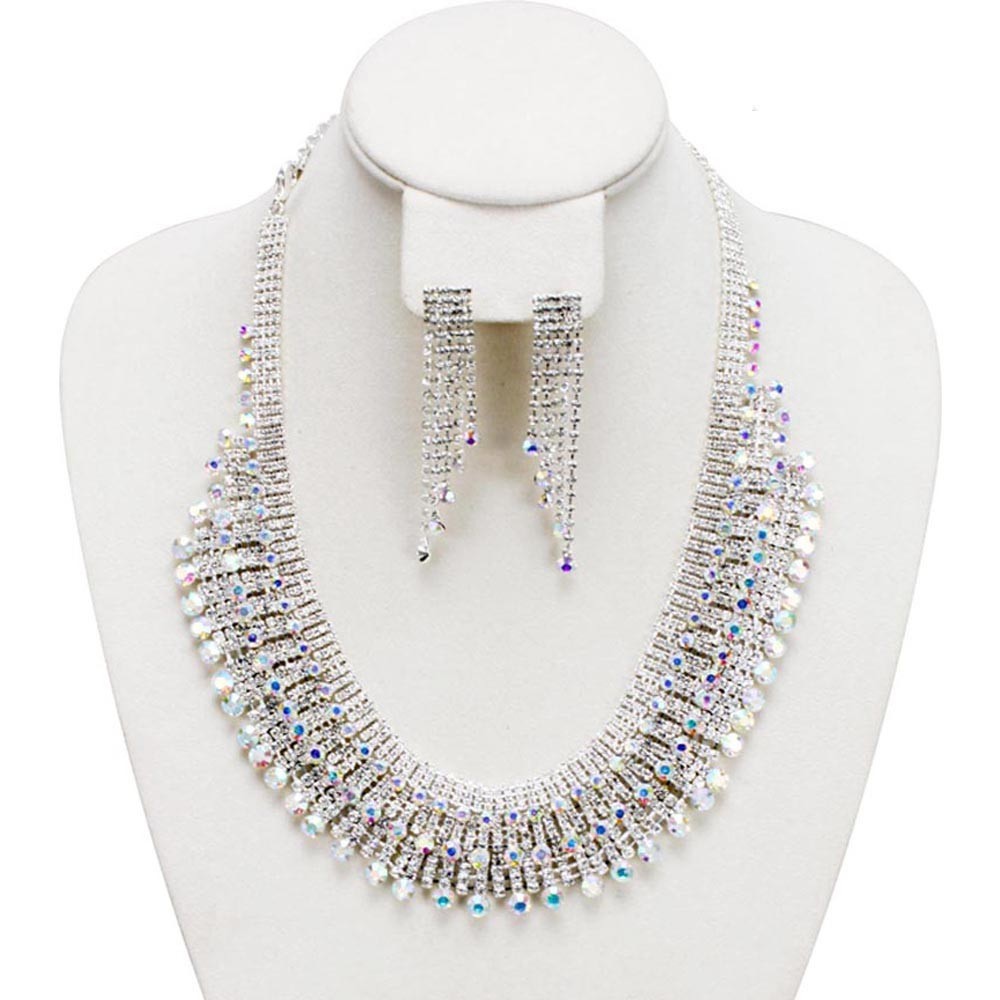 3 Tiered Rhinestone Color Gradient Necklace and Earrings Set
