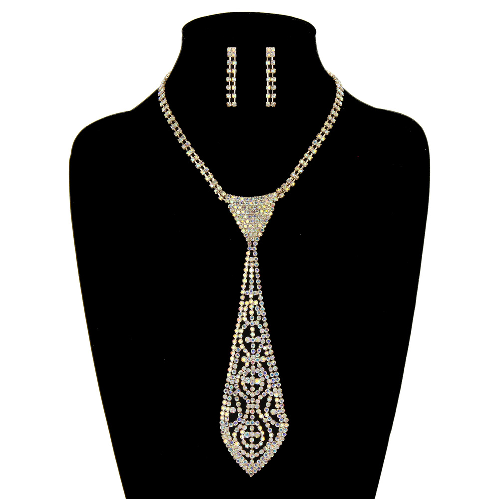 Medium Rhinestone Tie Necklace and Earrings Set