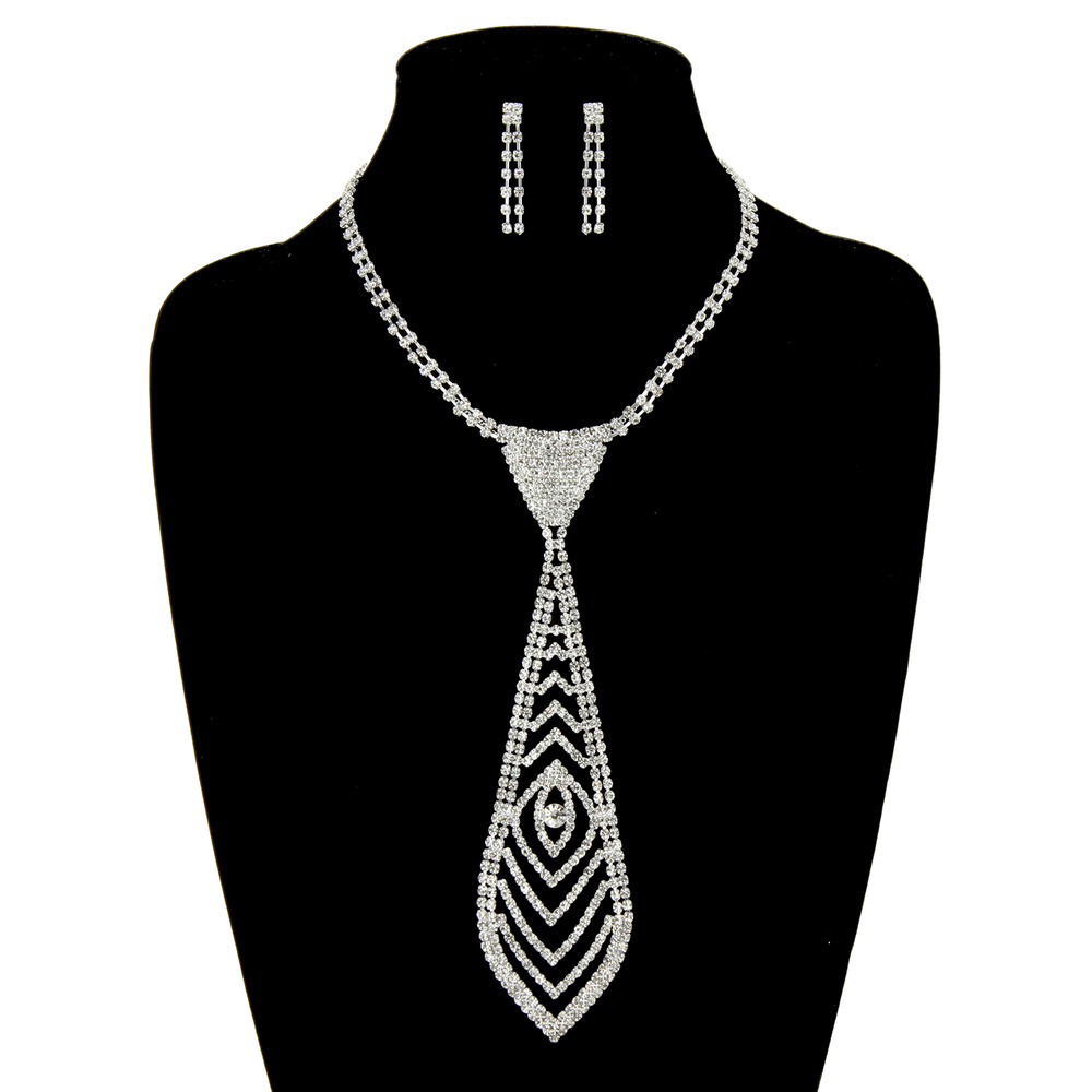 Medium Rhinestone Tie Necklace And Earrings Set