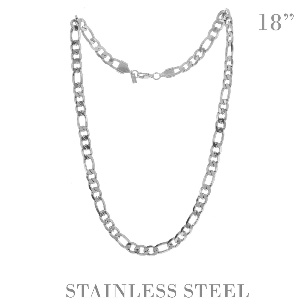 18" Unisex Figaro Link Chain Necklace In Gold And Silver Tone Stainless Steel