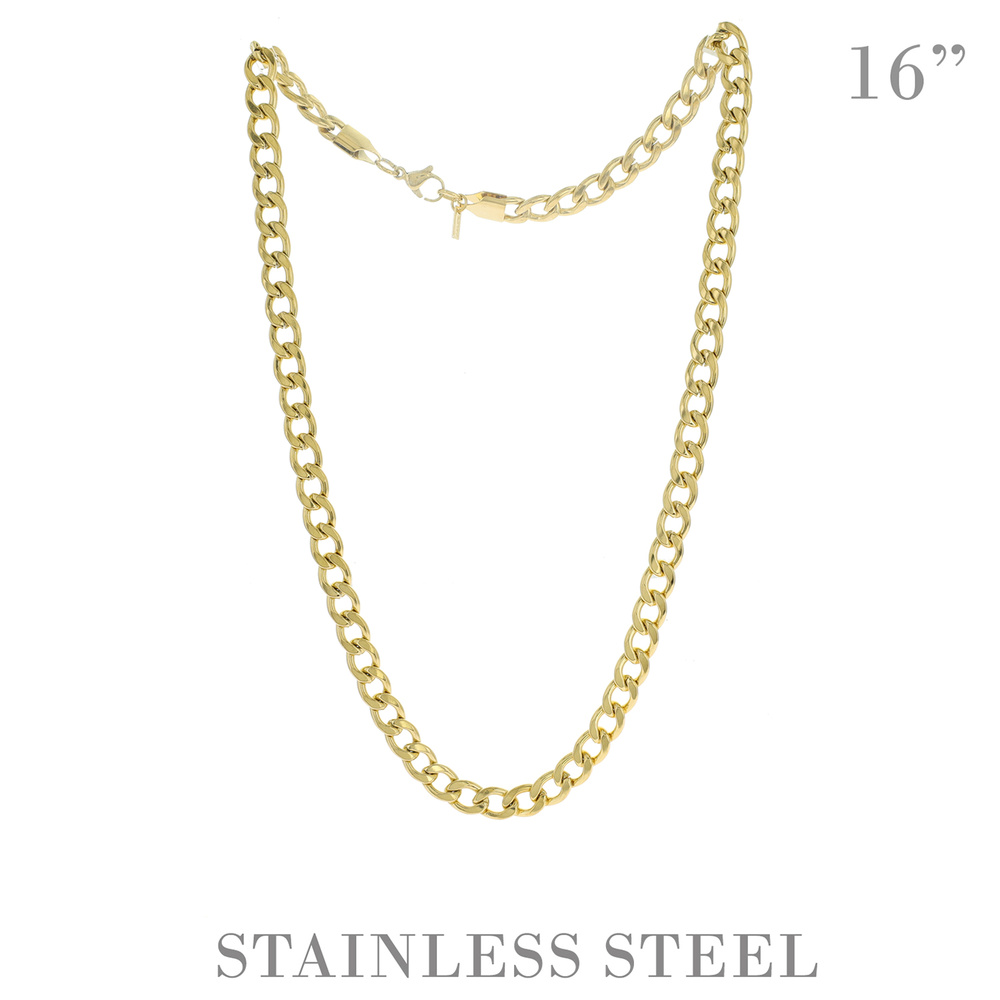 16" UNISEX CUBAN LINK CHAIN NECKLACE IN GOLD AND SILVER TONE STAINLESS STEEL