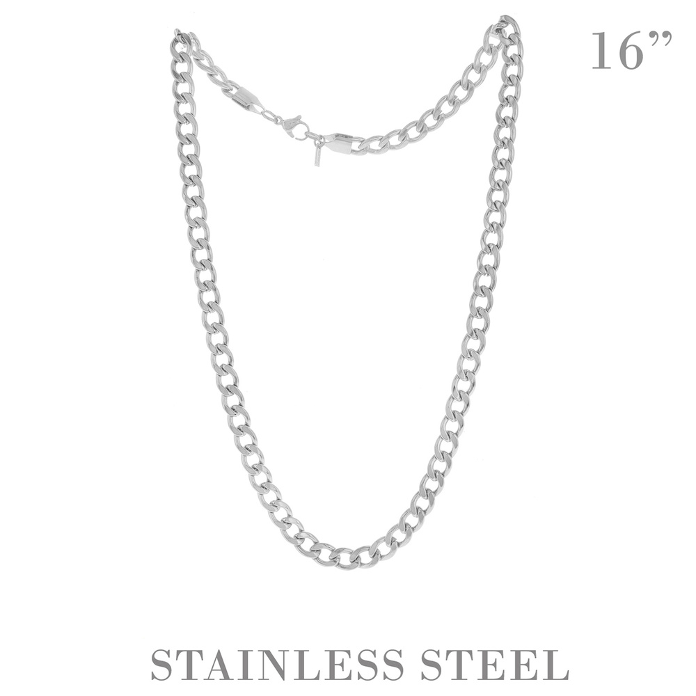 16" UNISEX CUBAN LINK CHAIN NECKLACE IN GOLD AND SILVER TONE STAINLESS STEEL