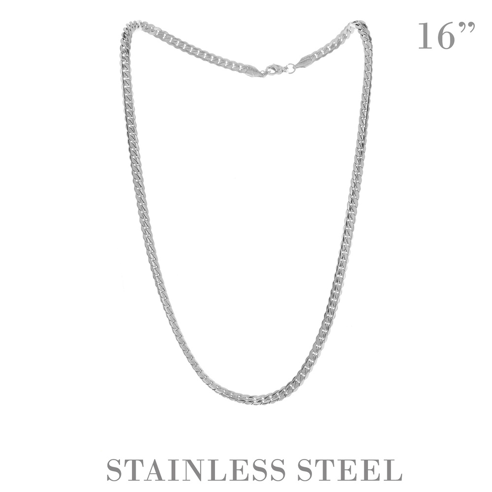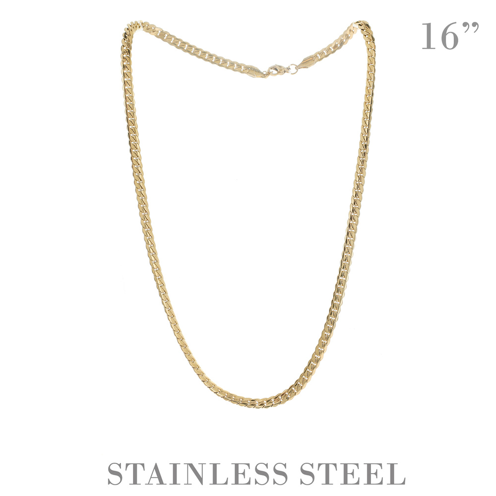 16" UNISEX CUBAN LINK CHAIN NECKLACE IN GOLD AND SILVER TONE STAINLESS STEEL METAL