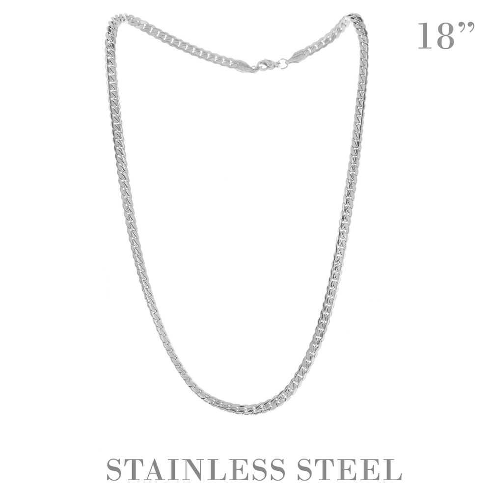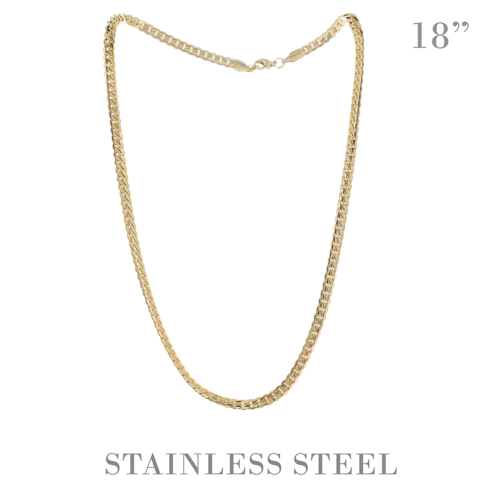 18" UNISEX CUBAN LINK CHAIN NECKLACE IN GOLD AND SILVER TONE STAINLESS STEEL METAL