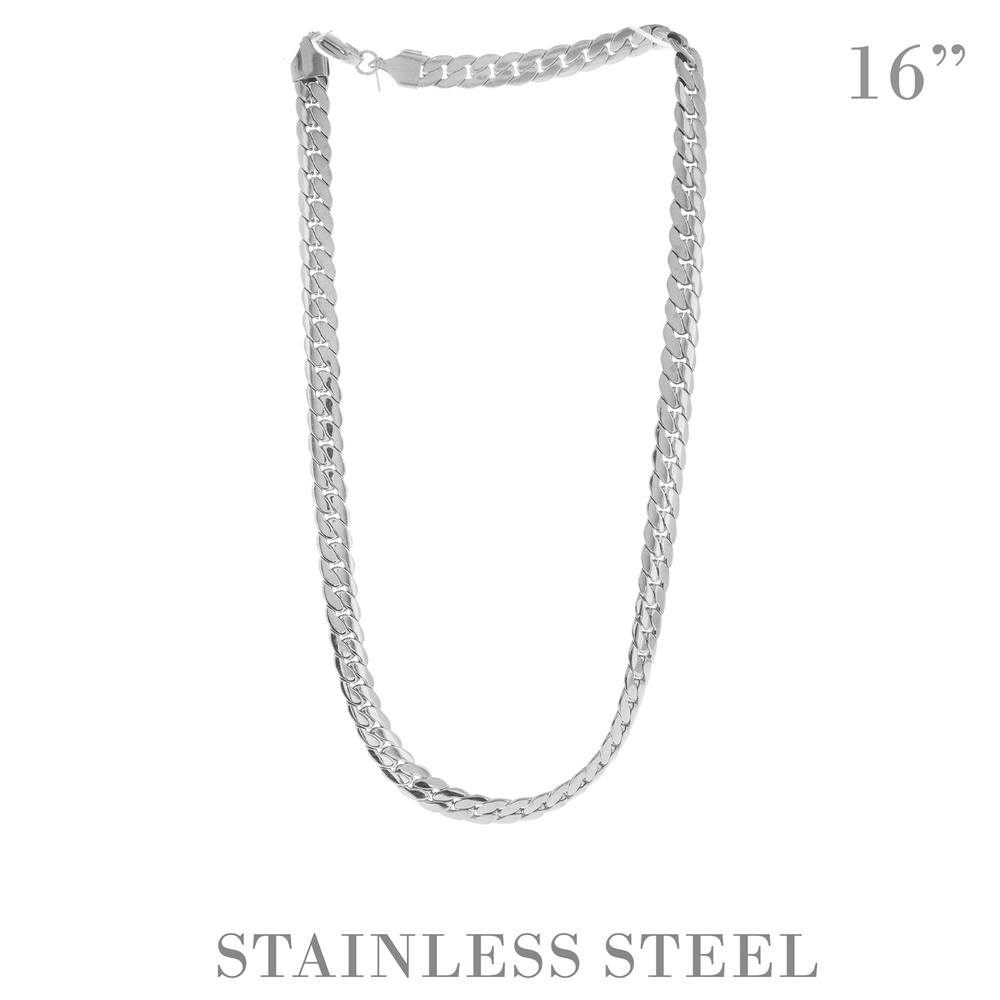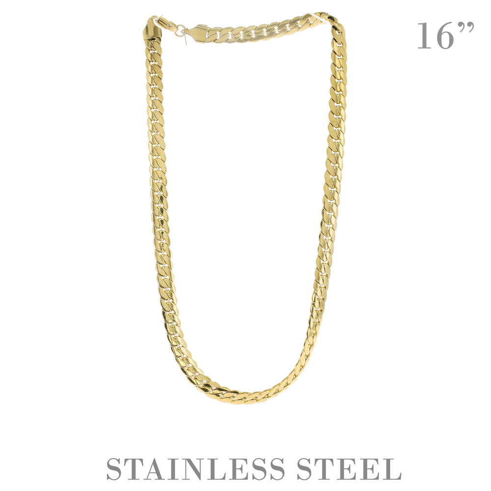 16" UNISEX CUBAN LINK CHAIN NECKLACE IN GOLD AND SILVER TONE STAINLESS STEEL