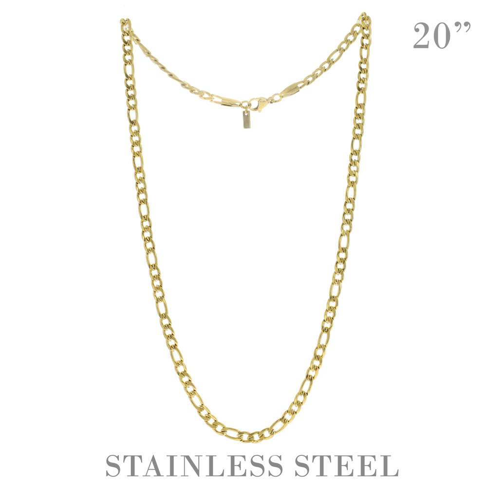 20" UNISEX FIGARO LINK CHAIN NECKLACE IN GOLD AND SILVER TONE STAINLESS STEEL METAL