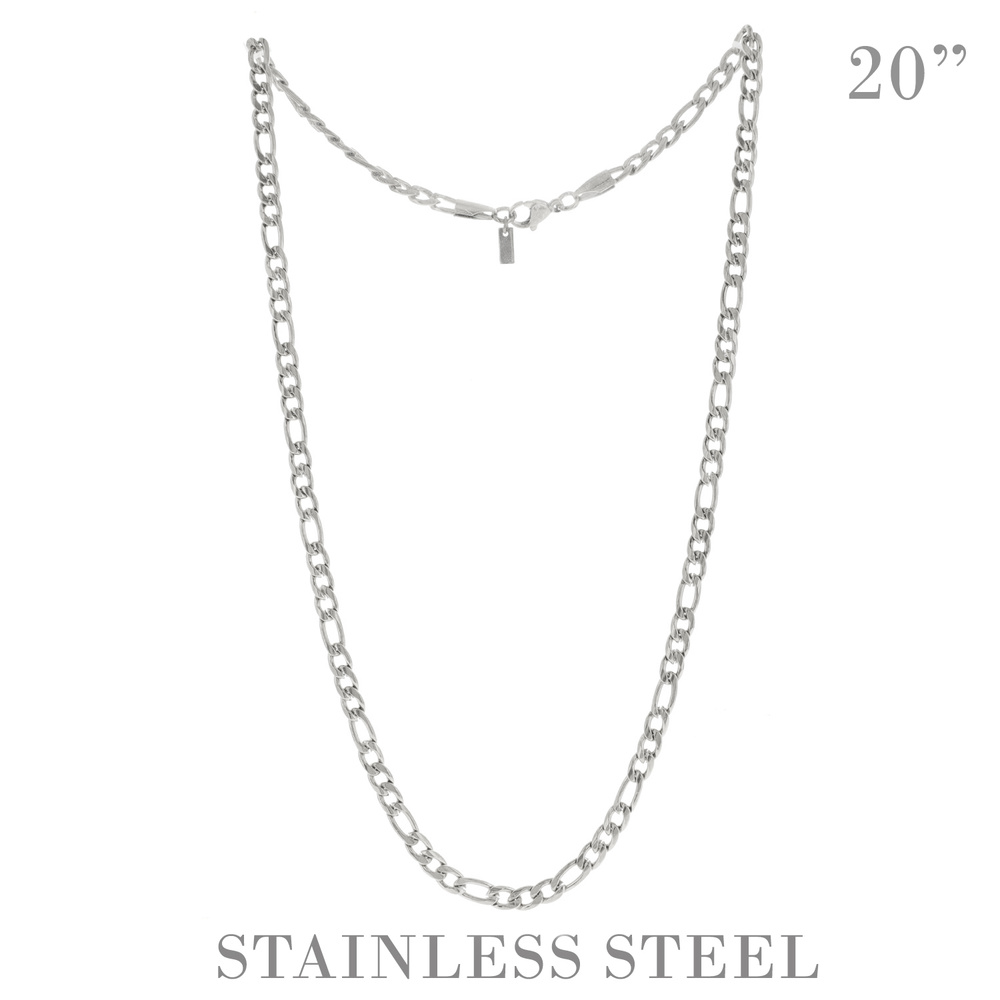 20" Unisex Figaro Link Chain Necklace In Gold And Silver Tone Stainless Steel Metal