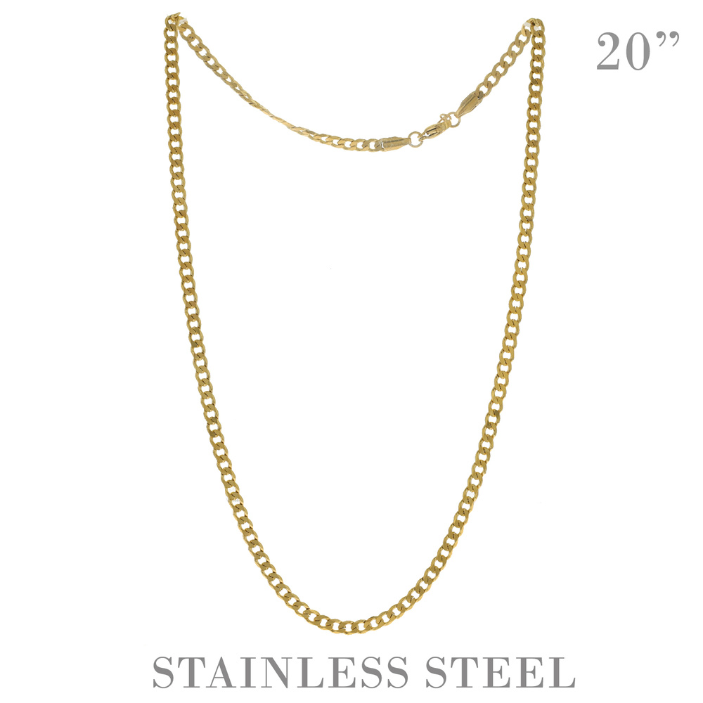 20" UNISEX CUBAN LINK ADJUSTABLE CHAIN NECKLACE IN GOLD AND SILVER TONE STAINLESS STEEL